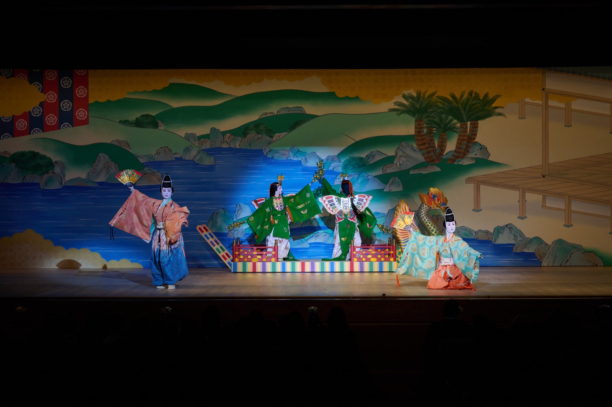 *踊り子が全員揃いの浅葱色(あさぎいろ)の衣裳で登場する場面(1景、2景、6景、8景)