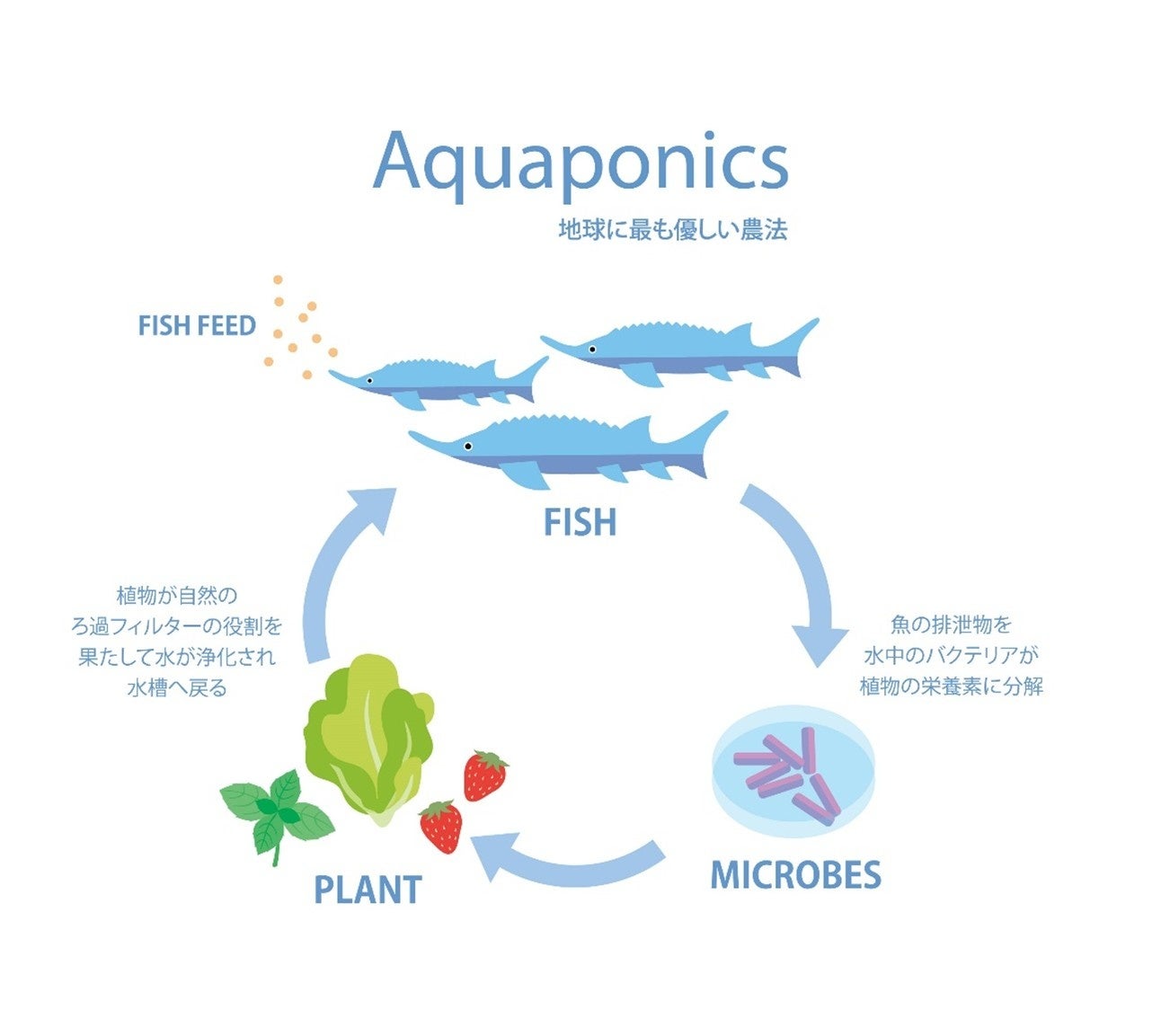 お魚を育て、その魚の排泄物をバイオの力で肥料に変えて野菜を育てる「アクアポニックス」農法は、循環型社会において大変優れたシステムです。この循環の中から肥料成分を液肥として抽出することができればアクアポニックスの更なる可能性を広げられるのではないかと当社は考えています。