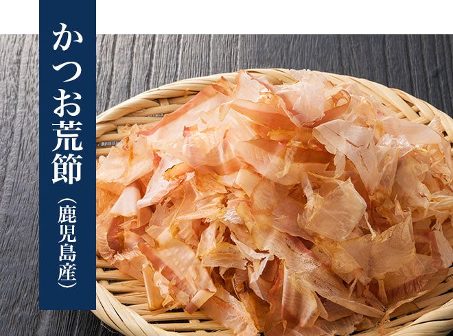 【原材料】あご煮干し粉末(鹿児島県製造)、鰹荒節(鹿児島県指宿製造)、昆布粉末(北海道道南産)、椎茸粉末(九州産)