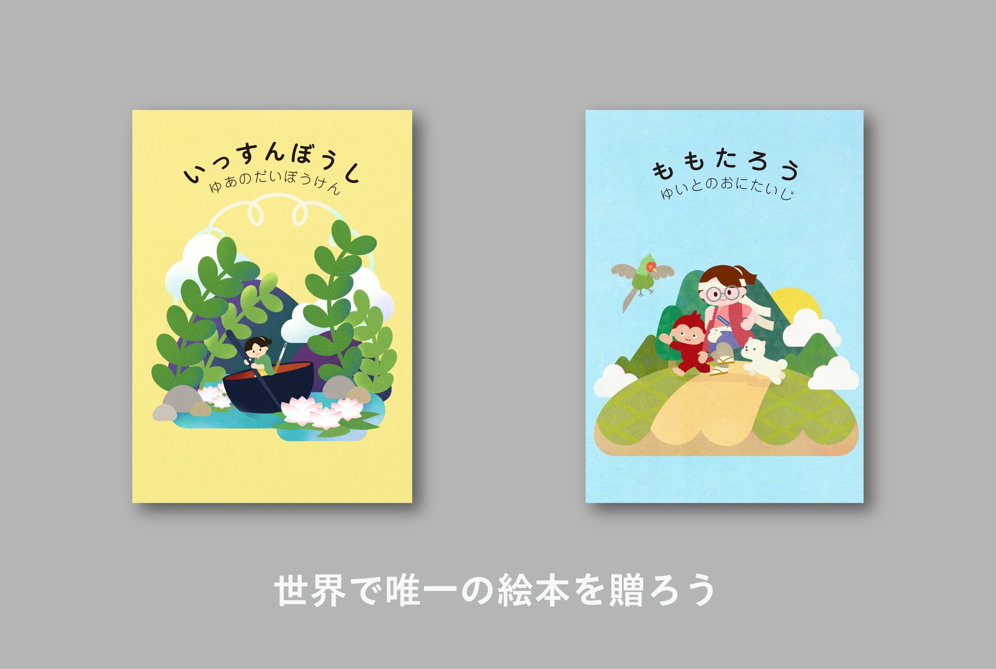 日本の昔話を可愛いくてPOPなイラストと共に、世界で唯一の絵本にして大切な方へ贈ることができるギフトサービスです。