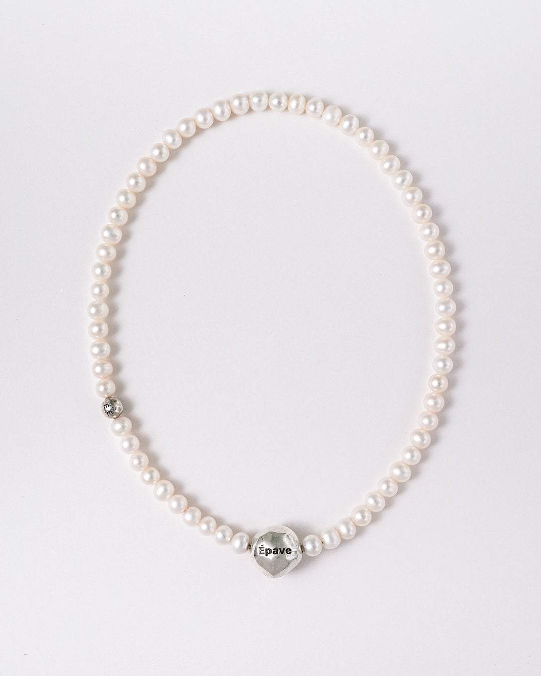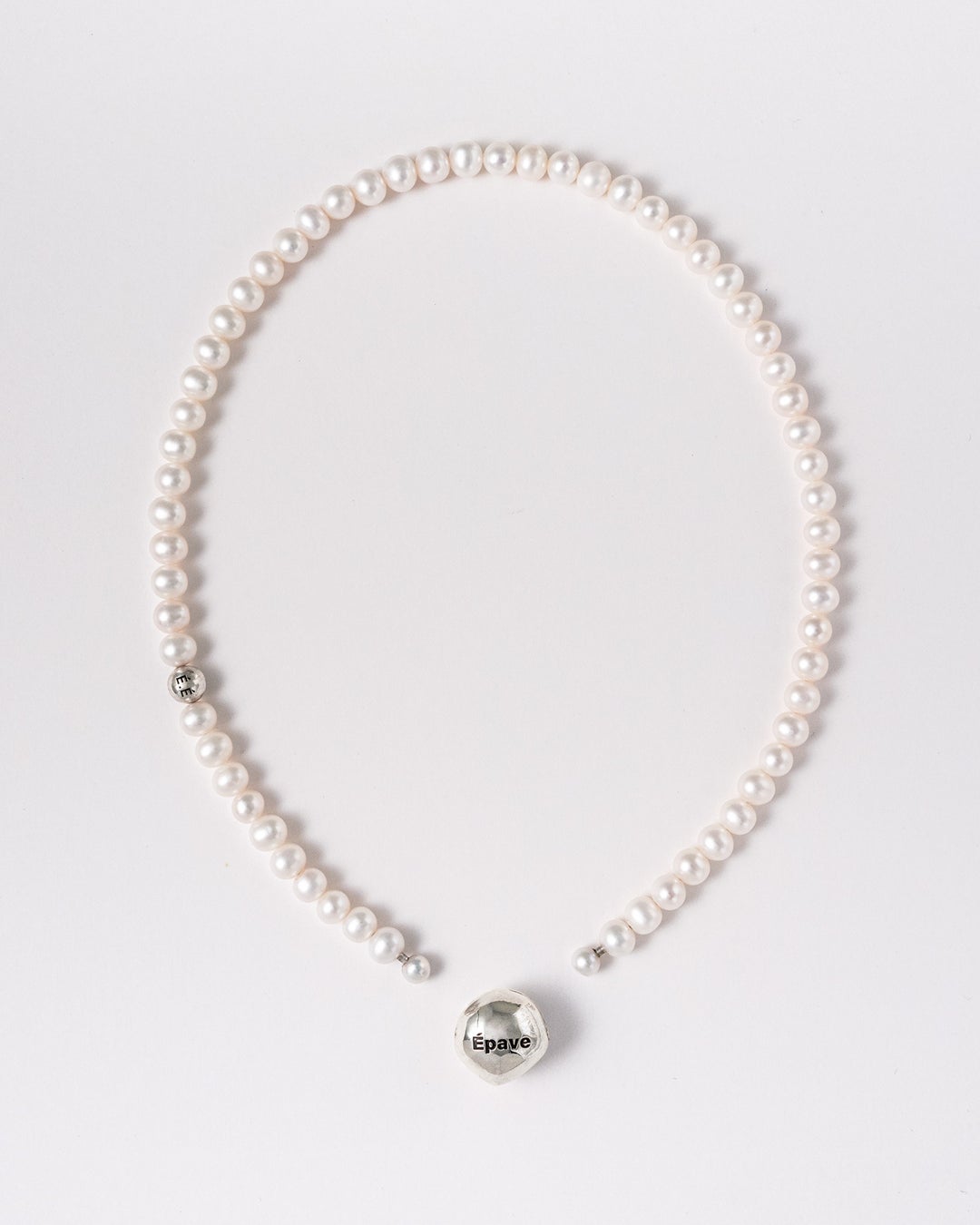 ―シルバー925のチャームに、パール、クオーツ、ラピスラズリを組み合わせたネックレス。マグネット仕様のチャームは、ヘッドとクラスプを兼ね、アート性と機能美を併せ持つモダンな佇まいを実現しました。―