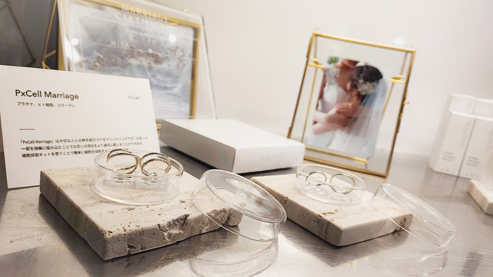 「PxCell Marriage」はお互いの細胞を独自のコラーゲン足場技術で埋め込んだ結婚指輪です。