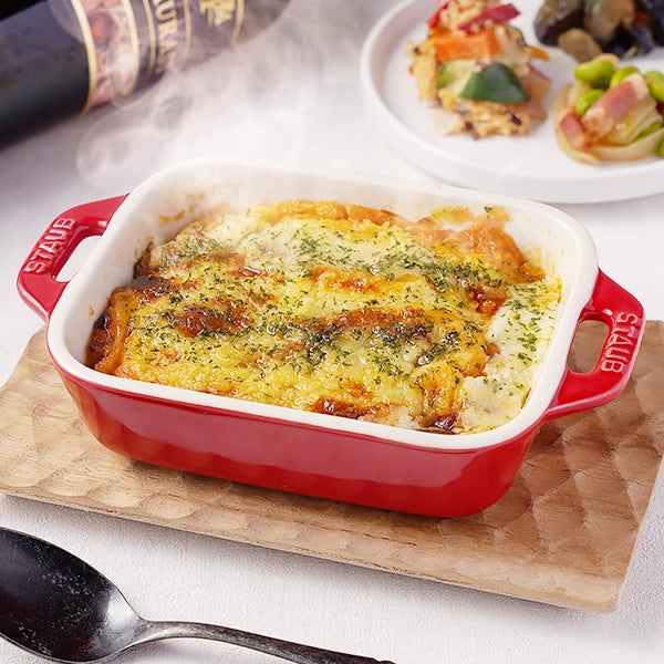 フランスの国民食「アッシェ・パルマンティエ」は大豆ミートを使い、健康ケアが出来る仕立てに!ミートソースとじゃがいもピューレを重ねて焼き上げることで、濃厚でなめらかな口当たりです。