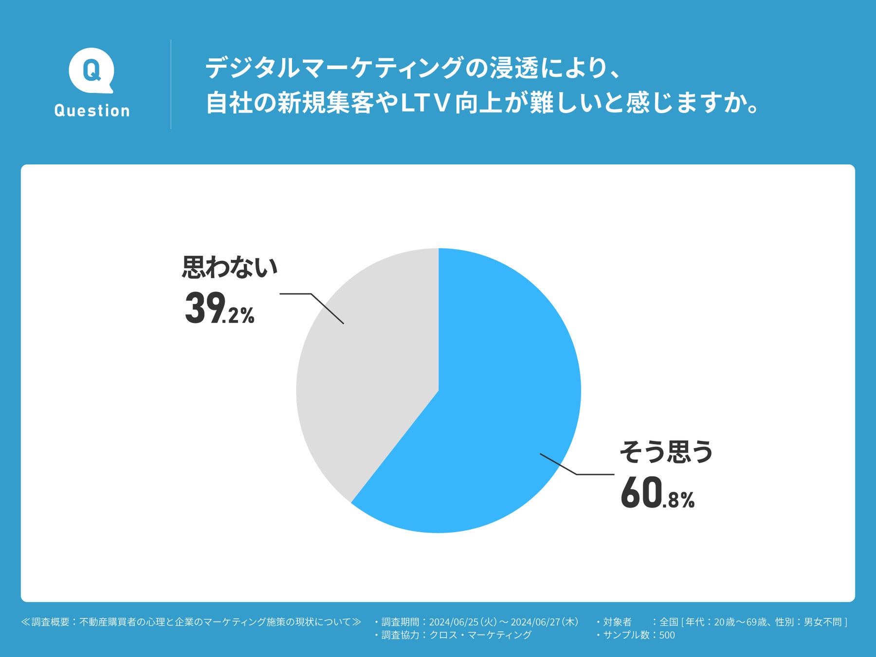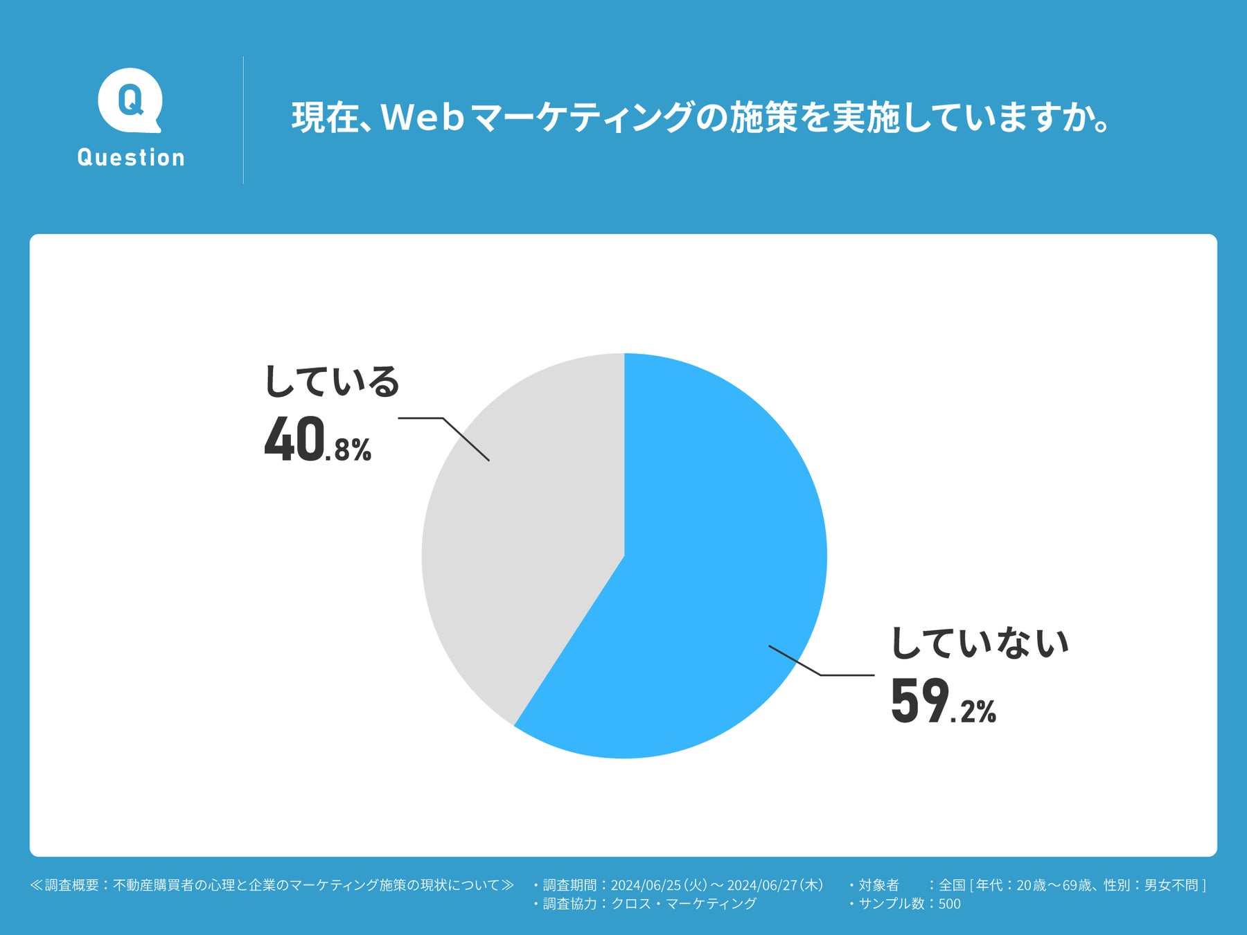 「実施していない」と回答した不動産業界の関係者は約60%に上り、人口減少が激化しデジタルマーケティングが浸透している中で、意外な結果となりました。