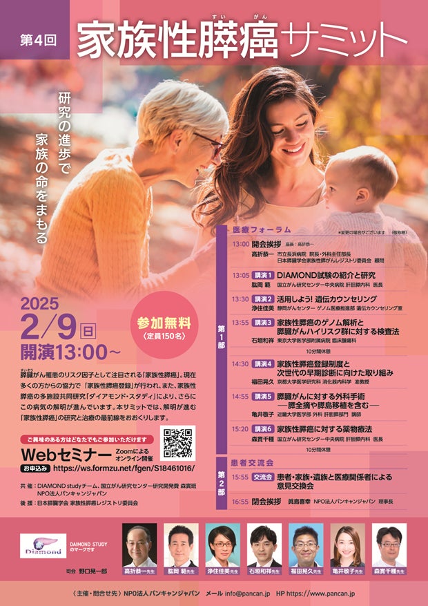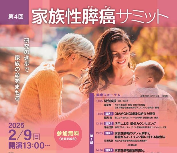 すい臓がんになるハイリスク因子「家族性」の最新情報を解説します-2/9開催「家族性膵がんサミット」(Webセミナー・参加無料) 病気を知って「ステージ0」の早期発見へ