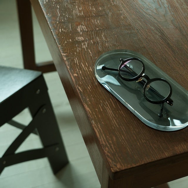 こぶりな円と、お気に入りのメガネや万年筆を置くのに相応しい楕円の二種類。