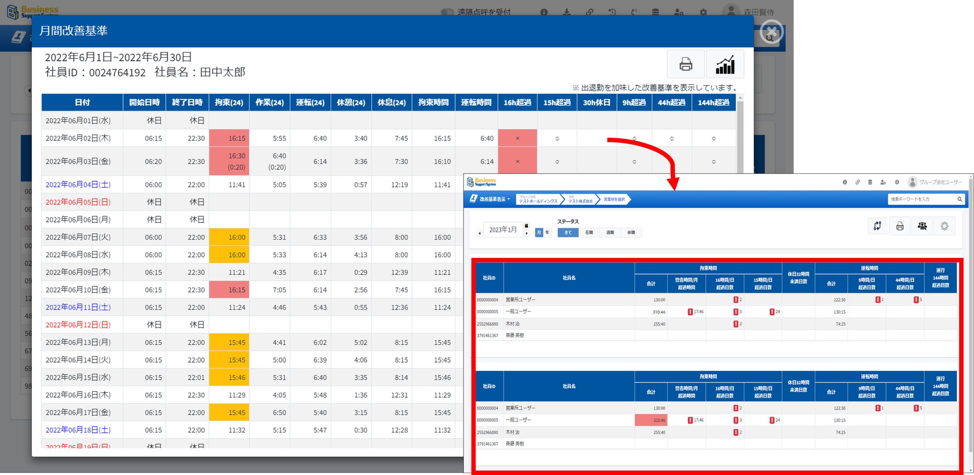 また、運行データよりわかる改善基準違反の検出も可能になります。