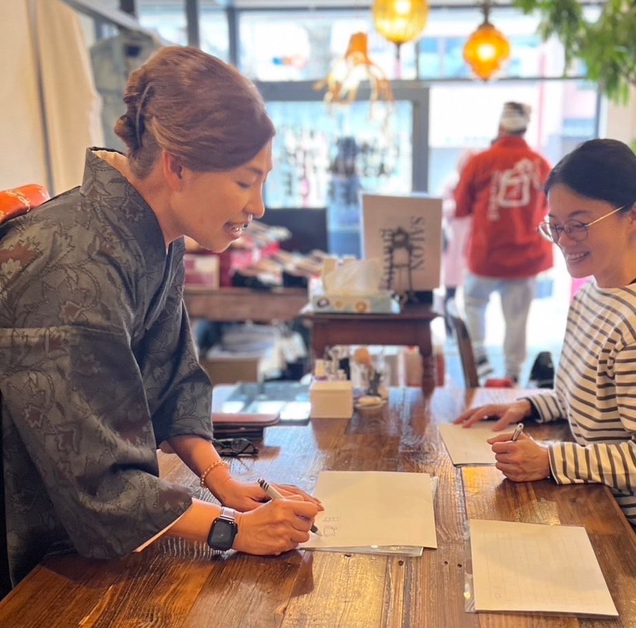 あなたの一筆が書道アートに!ホテルのロビーで書道体験。心温まる手書きの魅力を文字アートにして伝えます。