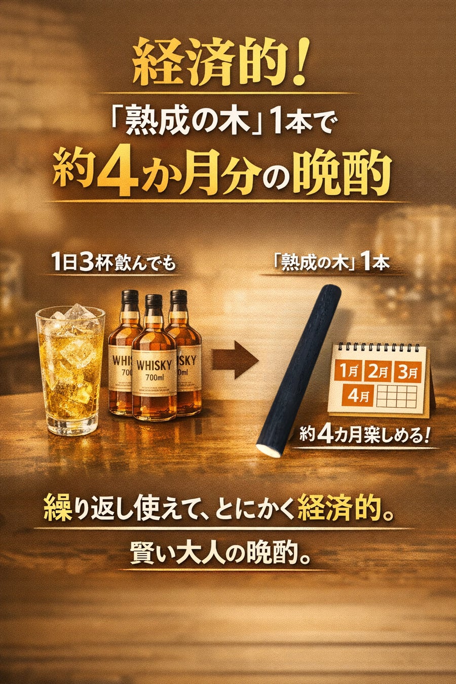 何度も繰り返し使える設計だから、とても経済的。高価な長期熟成酒を購入しなくても、普段のお酒を手軽に熟成の味わいへと変化させることができます。一本で何度も楽しめるためコストパフォーマンスにも優れ、日常のお酒時間をぐっと贅沢にしてくれるアイテムです。