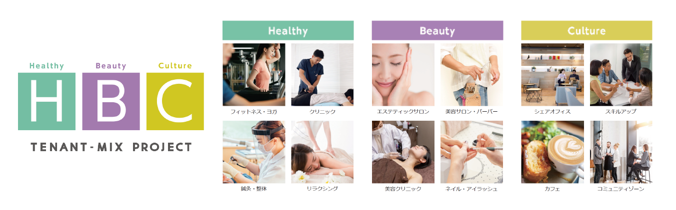 Healthy(ヘルシー)・Beauty(ビューティー)・Culture(カルチャー)の3つのカテゴリーコンセプトに沿って商業施設フロアをゾーニング。