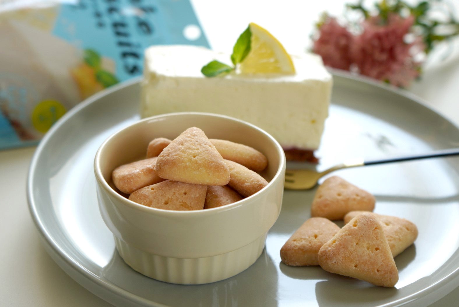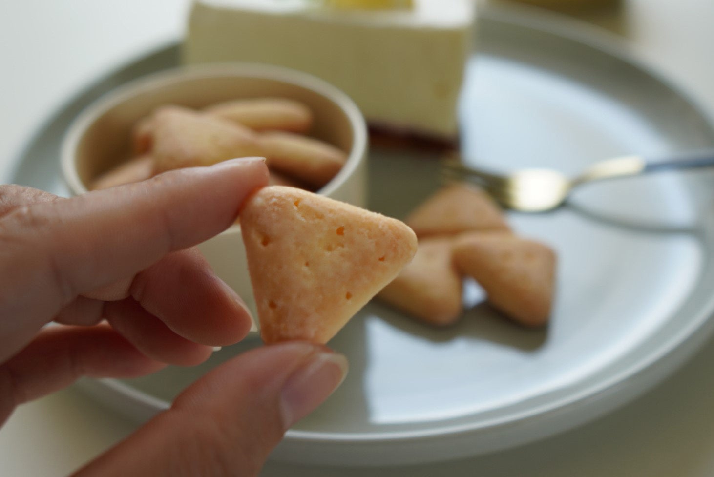 サクッとしっとりとした新食感を楽しめる商品で、まるでケーキのような濃厚な味わいをお楽しみいただけます。ビスケットの形状にもこだわり、ケーキを連想する可愛らしい三角形に作り上げました。