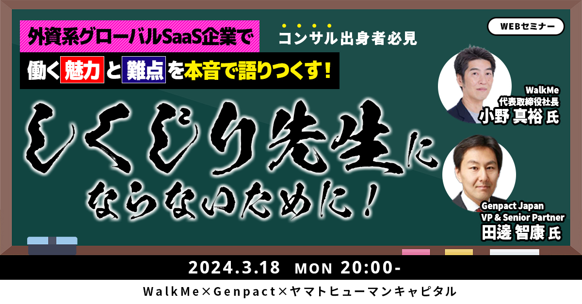 【3/18開催ウェビナー】コンサル出身者必見!『しくじり先生にならないために!』外資系グローバルSaaS企業で働く魅力と難点を経験者が本音で語りつくす!