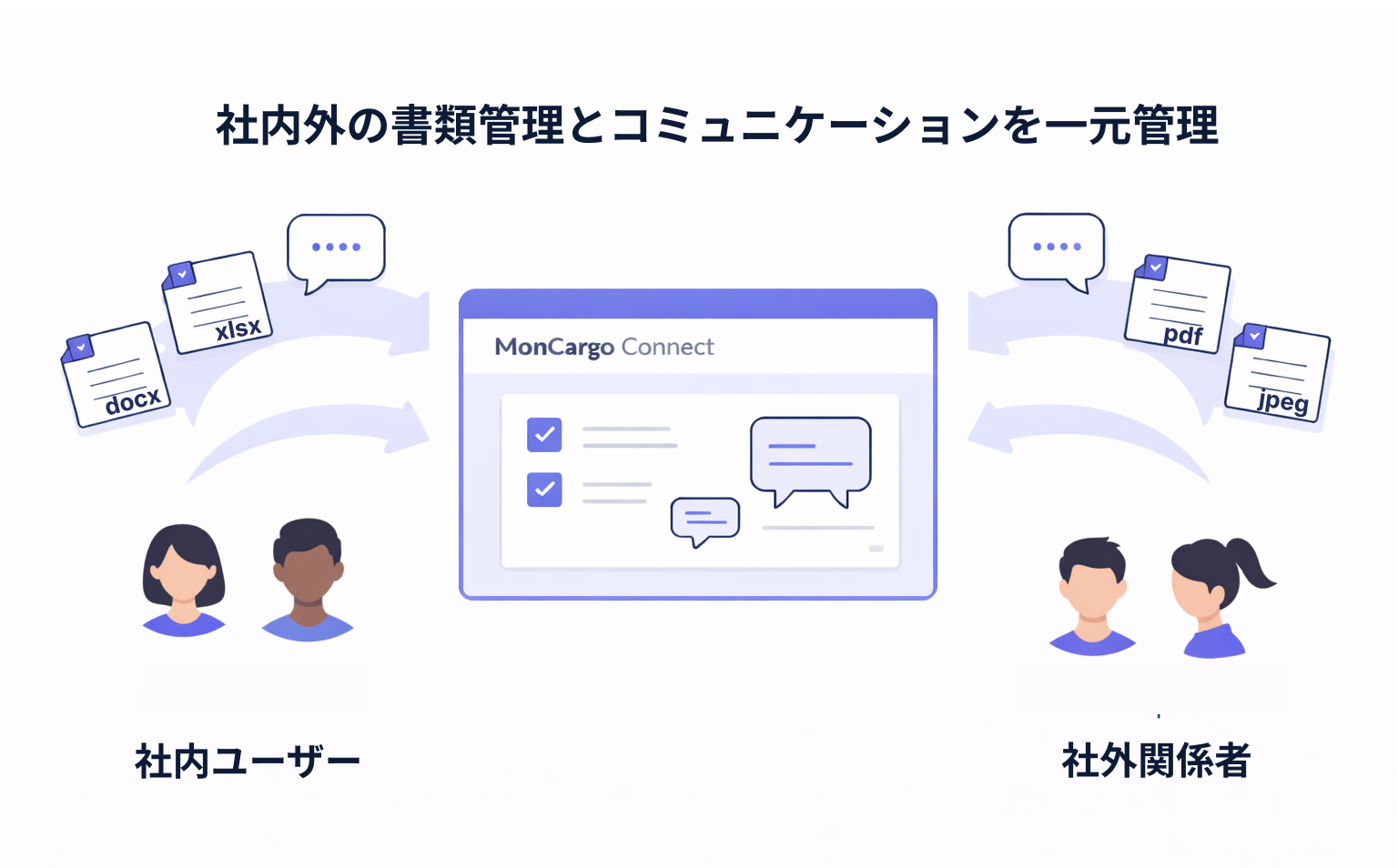また、今回ご案内した「MonCargo Connect」は、こうした船積み情報に関するやり取りやファイル共有をMonCargo上で完結できるようにするオプション機能です。複数の関係者とやり取りをされる企業様にとって、コミュニケーションコストを削減し、さらなる業務効率化を目指します。