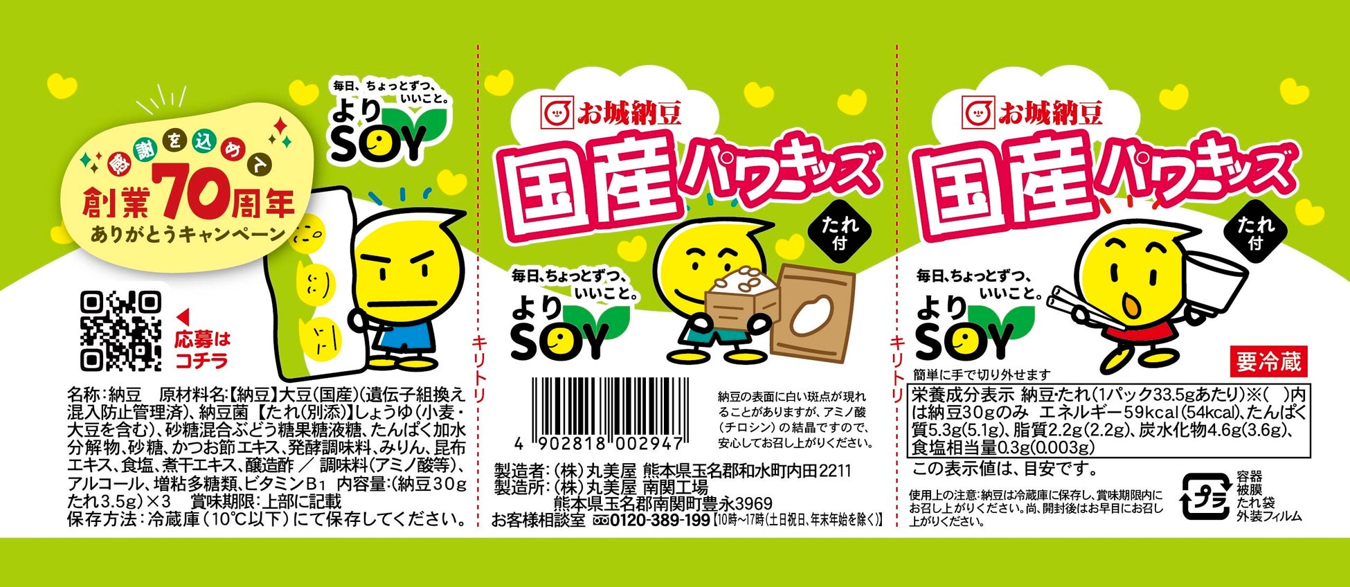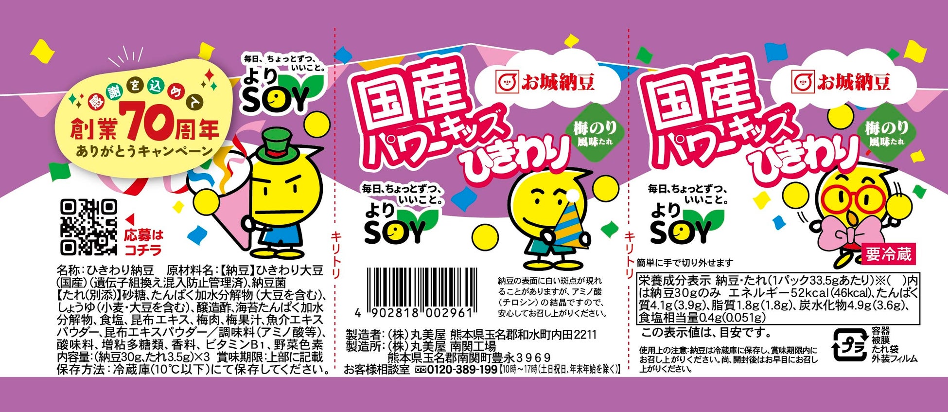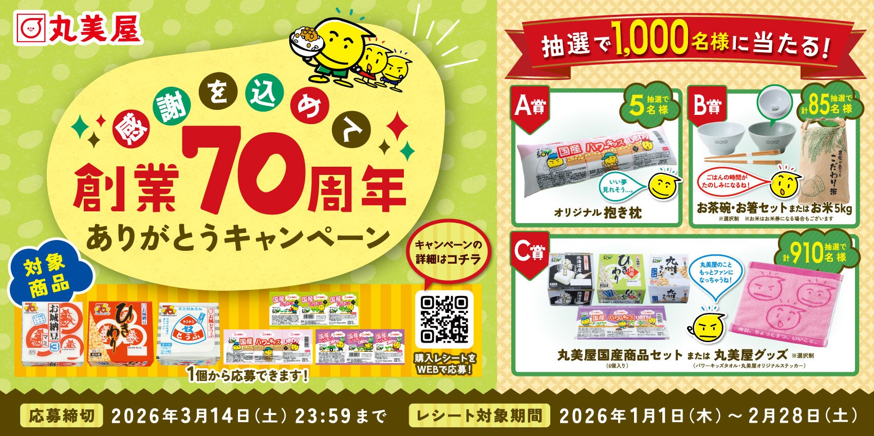 「お城納豆」「お城とうふ」でお馴染みの納豆とうふメーカー 株式会社丸美屋(本社:熊本県玉名郡和水町、代表:東健)は、2026年3月13日をもちまして、創立70周年を迎えることとなりました。70年もの永きにわたり、多くのお客様、お取引先様をはじめ、関わる全ての皆様にご支援とご愛顧を賜り、心より感謝申し上げます。