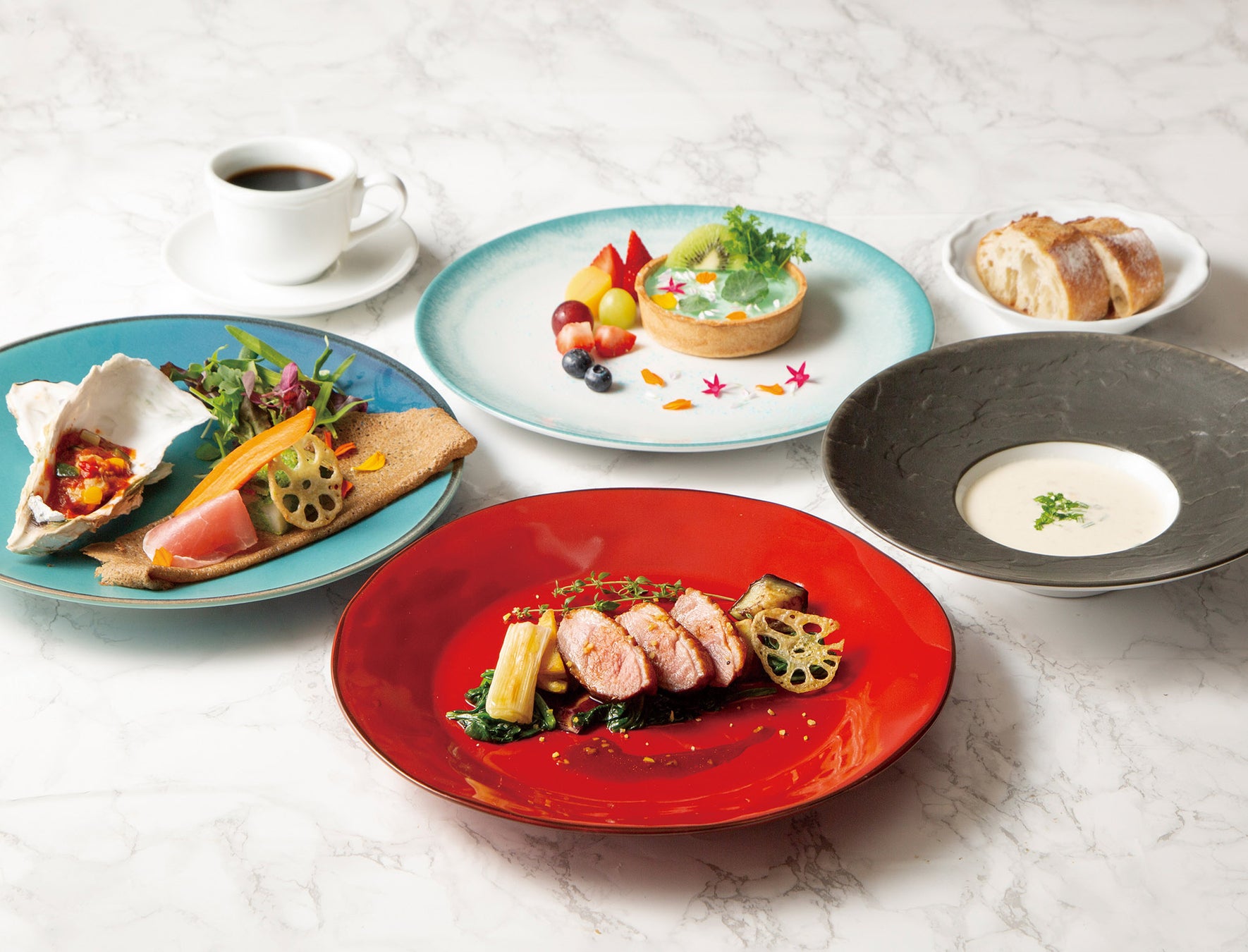レアチーズタルトなど、趣向を凝らした彩り豊かなコースをお楽しみいただけます。