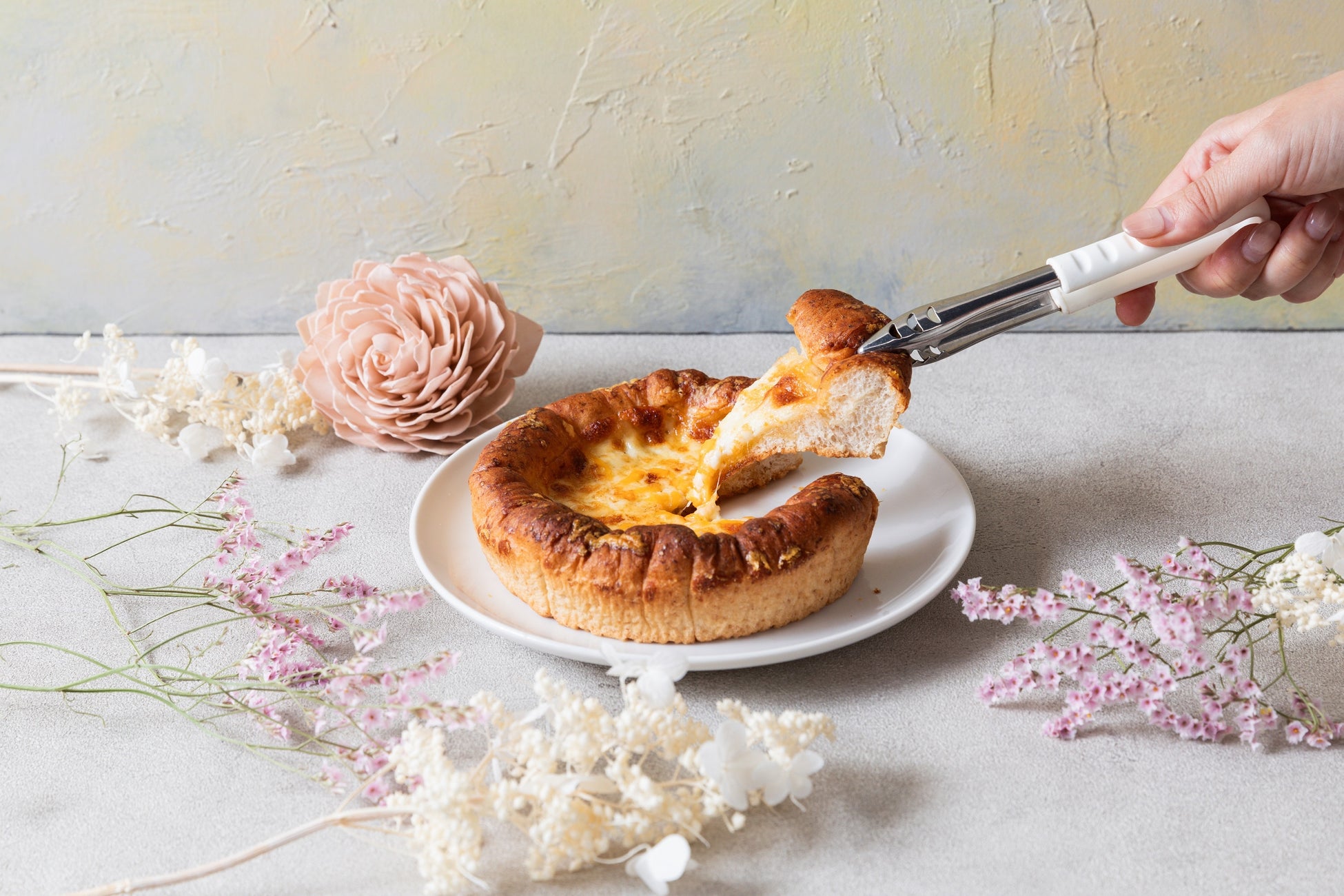 睡蓮の水面をイメージし、チーズに「ひたる」パンとして開発したチーズフォンデュブレッド。全粒粉入りの生地に、生クリームを加えたくちどけの良いチーズフィリングをのせ、パルメザンチーズをトッピングして焼き上げました。焼き立ては水面のようにチーズがゆらゆらと輝きます。