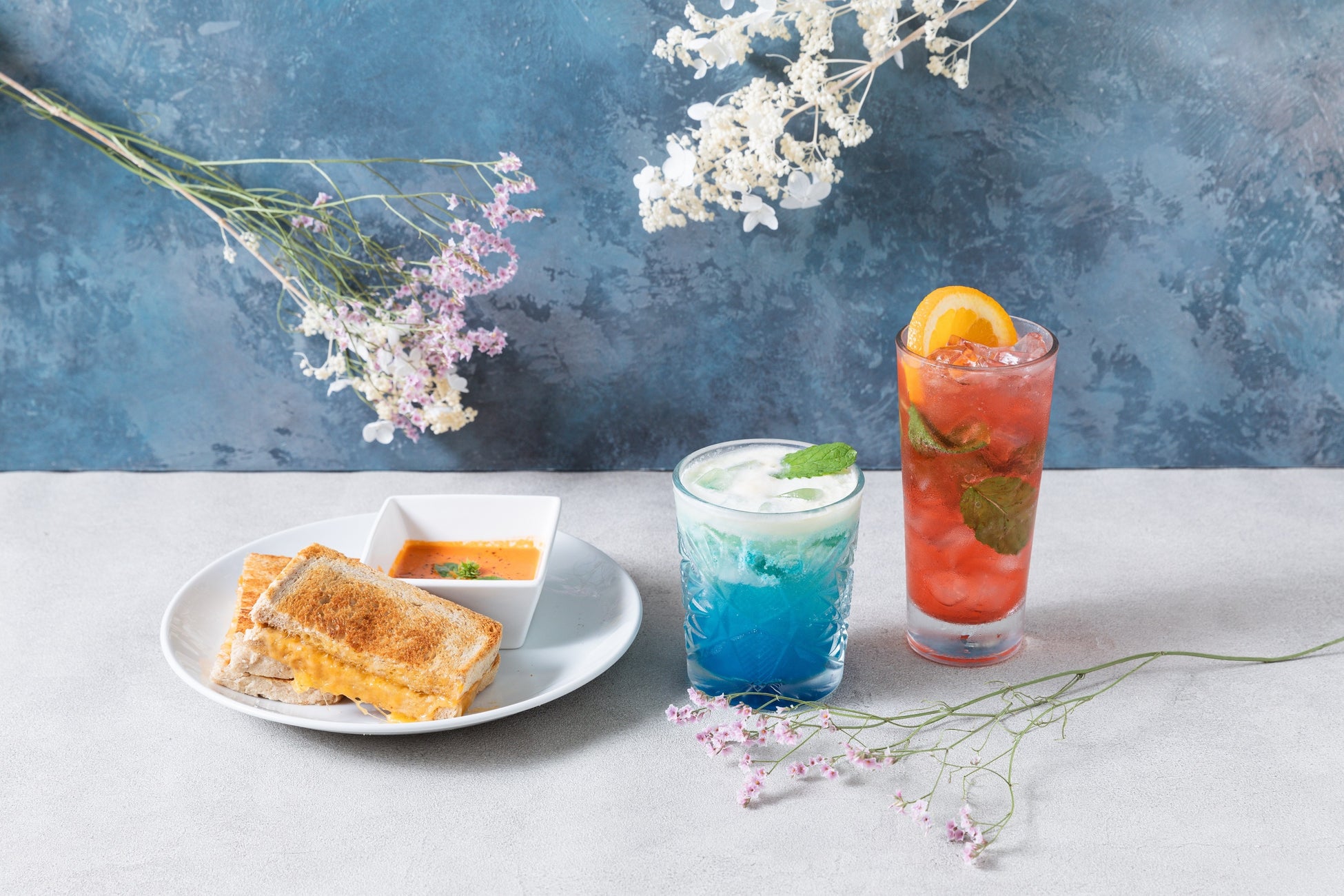 館内対象レストラン・カフェでは、モネの作品に「ひたる」コラボメニューを10月5日(土)より販売します。アトレ上野でしか食べられない、モネの〈睡蓮〉よりインスパイアされた逸品や、モネの作品を連想させるメニューを心ゆくまでお楽しみいただけます。