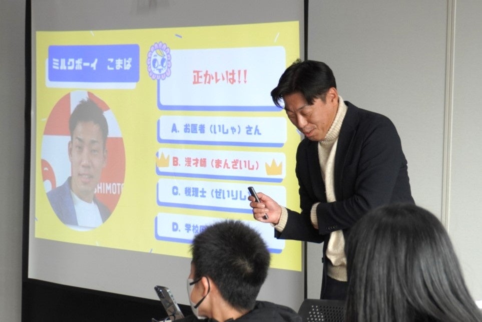 今回講師を務めた佐野氏は、普段は税理士として顧問先である中小企業の経営支援を行っています。イベントに向けて、「警察や弁護士のドラマは山ほどあるのに、税理士のドラマってないですよね。今日のイベントを通して、税理士の仕事を子どもたちに知ってもらえたらと思っています。」とコメント。ユーモアあふれる自己紹介で会場を盛り上げていただきました。