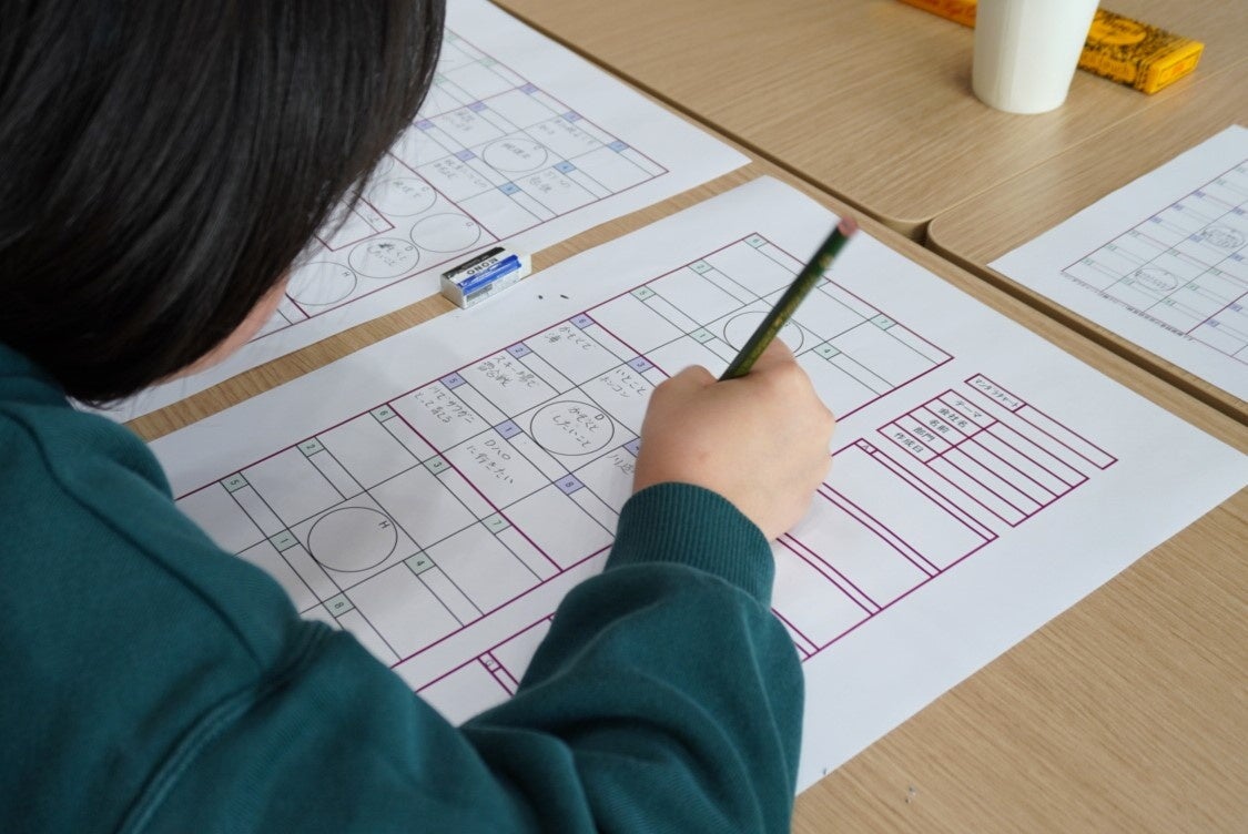 次は「どんな学校でどんな勉強がしたいか」について。自分の得意教科を伸ばすことを考える子がいる一方で、「苦手な算数を克服するためにどんな対策をすればいいだろう?」と頭をひねらせている子もいました。なかなか進まない子どもには、当会のスタッフや講師の佐野氏みずからサポートに入り、コミュニケーションを取りながら進めていました。