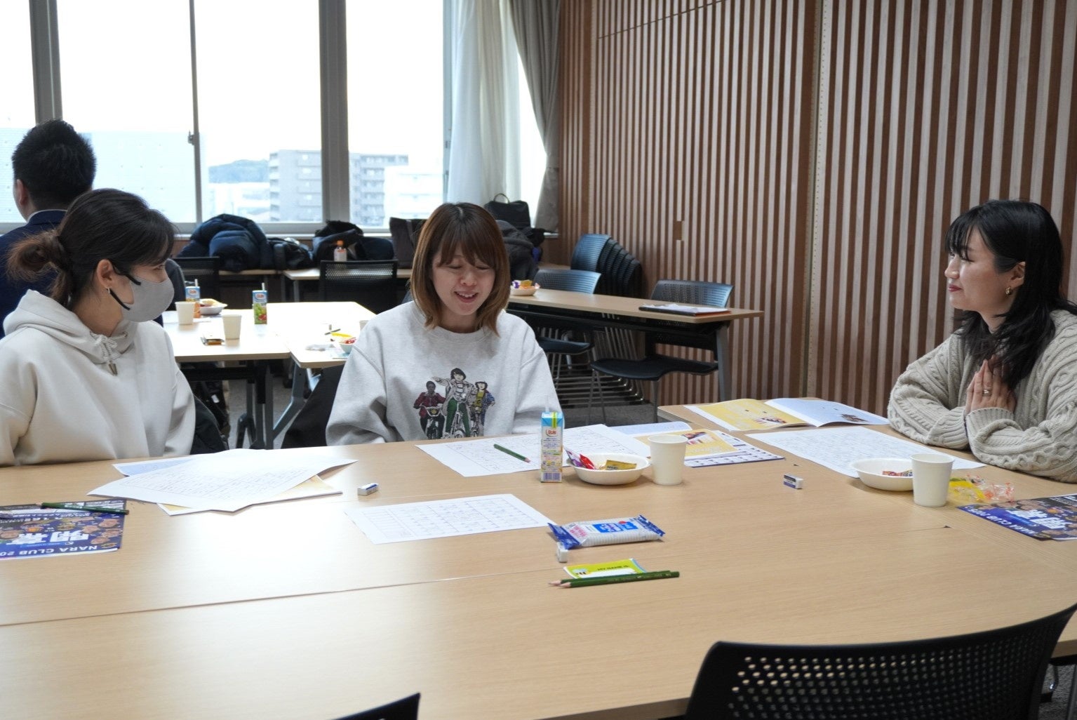 個人で取り組むだけでなく、テーブルごとにグループを作り、お互いにどんなことを書き出したのか発表する時間を設けました。ほとんどの参加者がこの日が初対面のため、はじめは緊張した空気が漂っていましたが、グループワークの時間を通してだんだんと緊張がほぐれている様子でした。