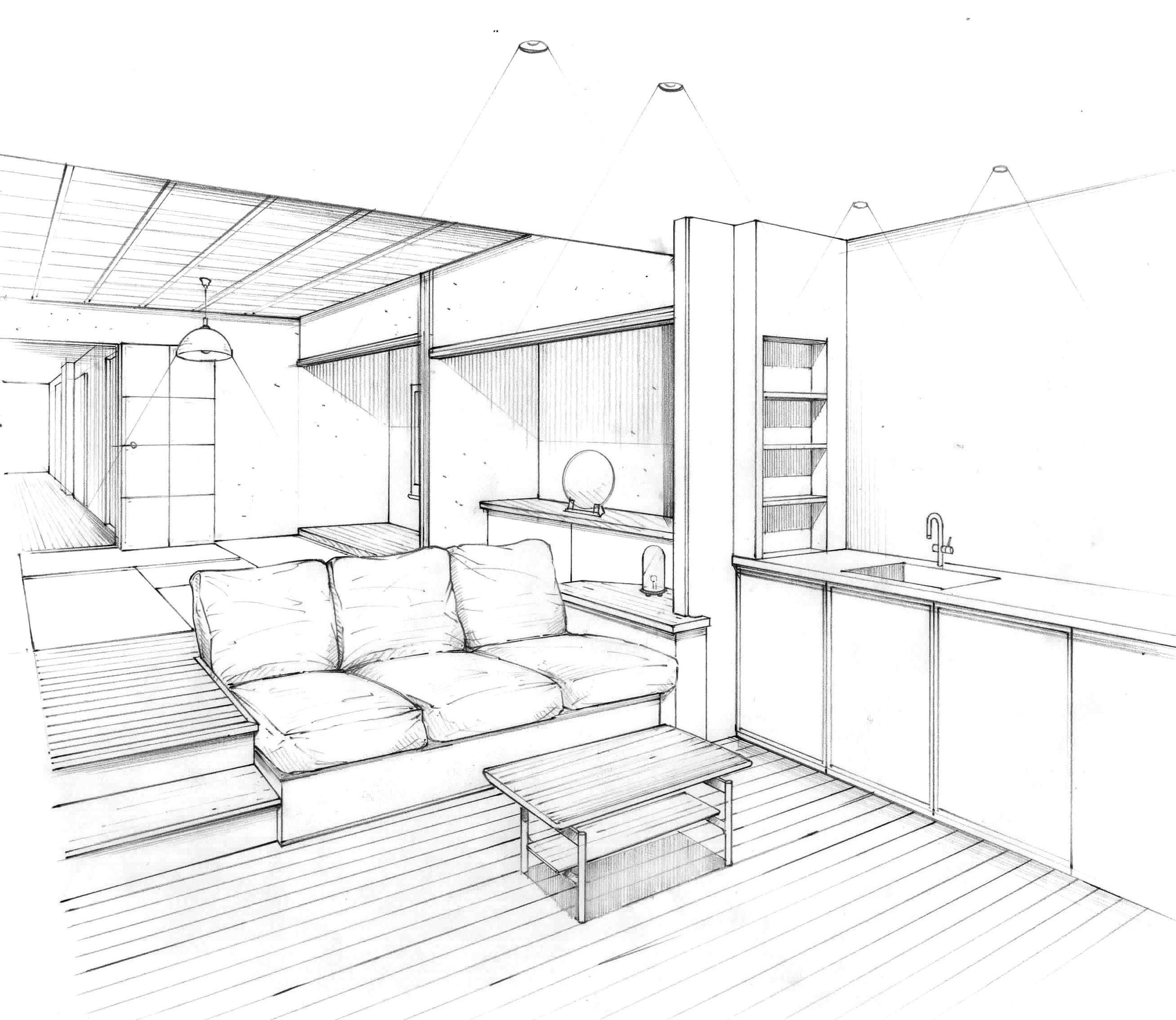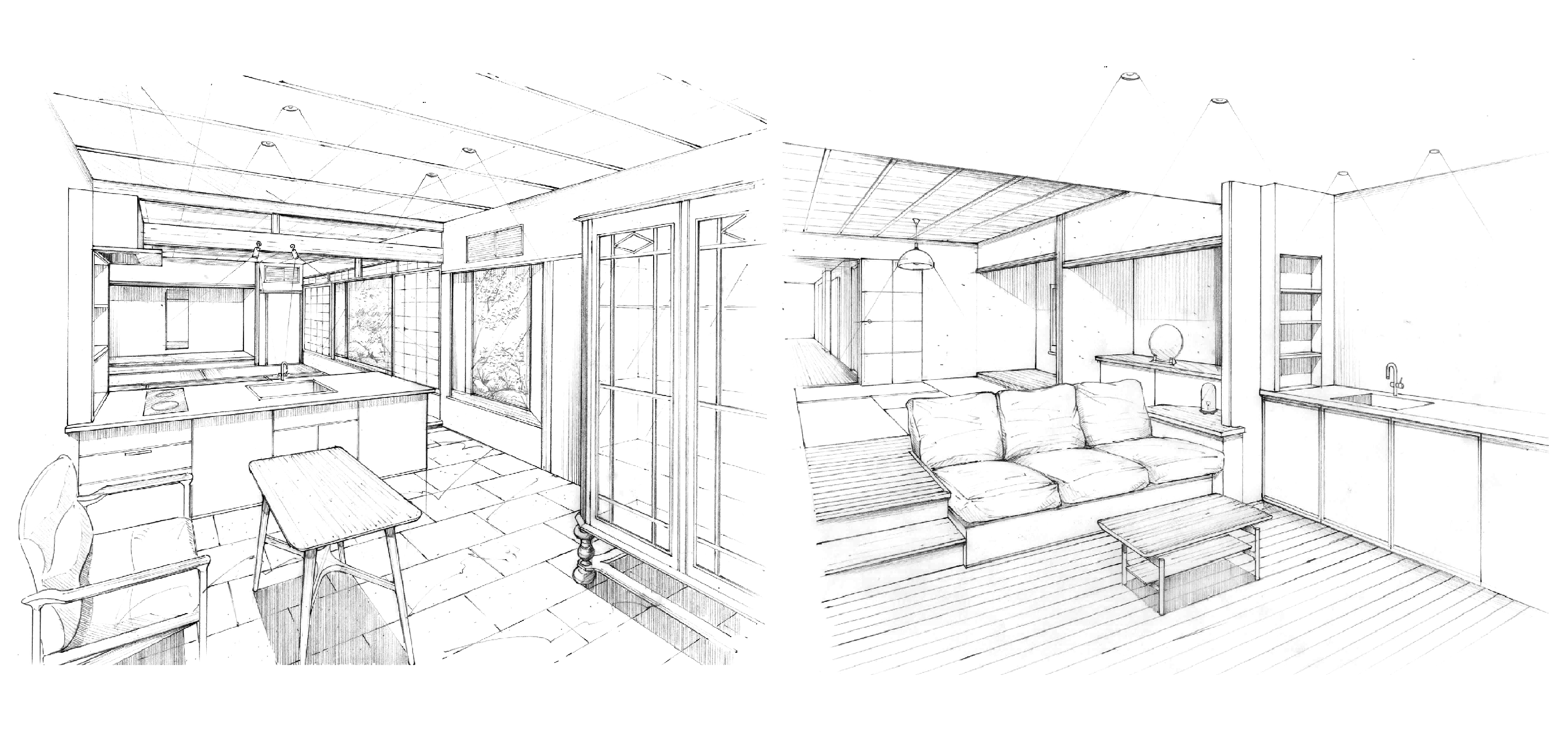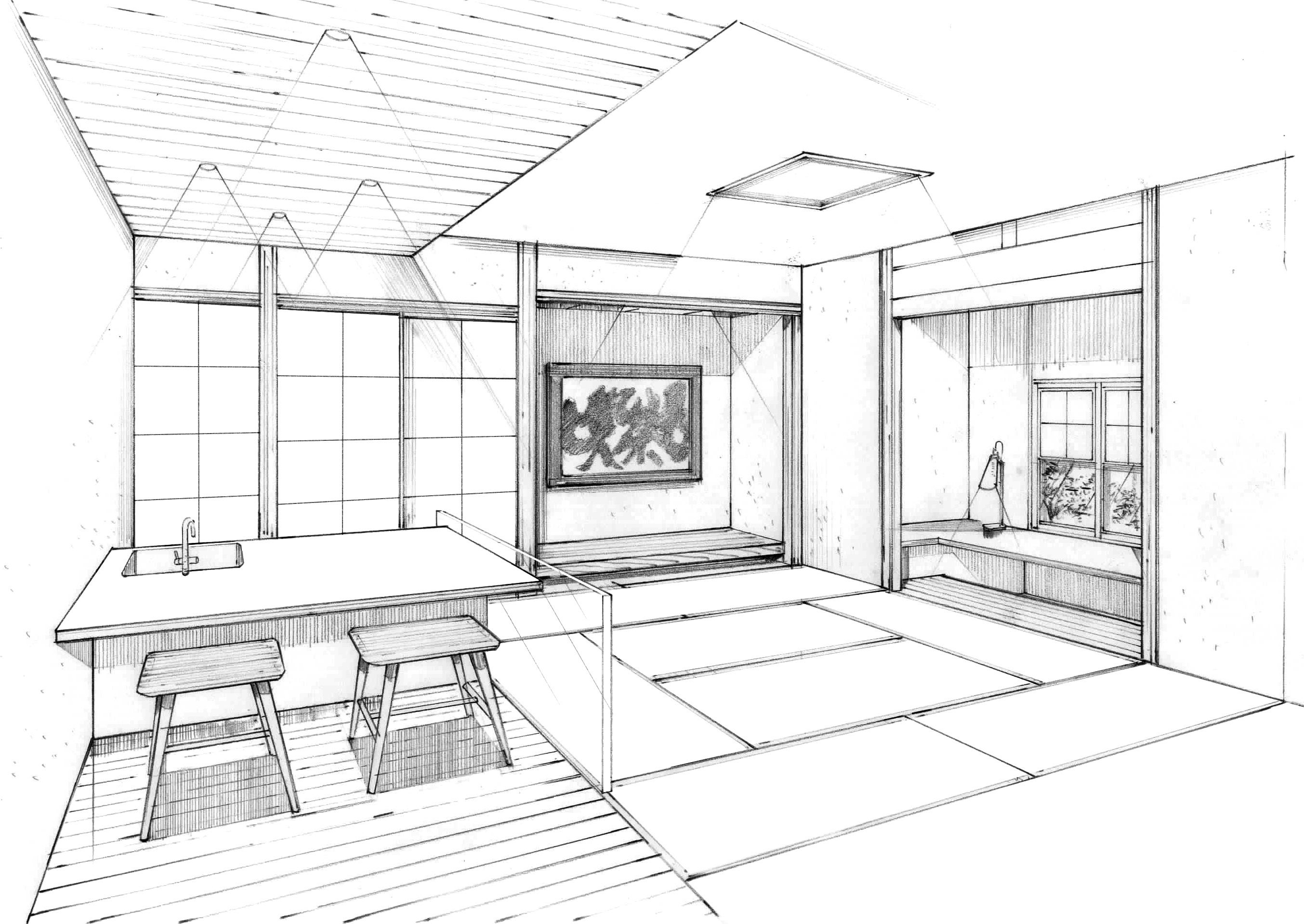 ・部屋ごとの独立性が高い間取りから、襖の開閉によりフレキシブルに広い空間を、吹き抜けの設置により開放感を得られるように工夫いたしました。