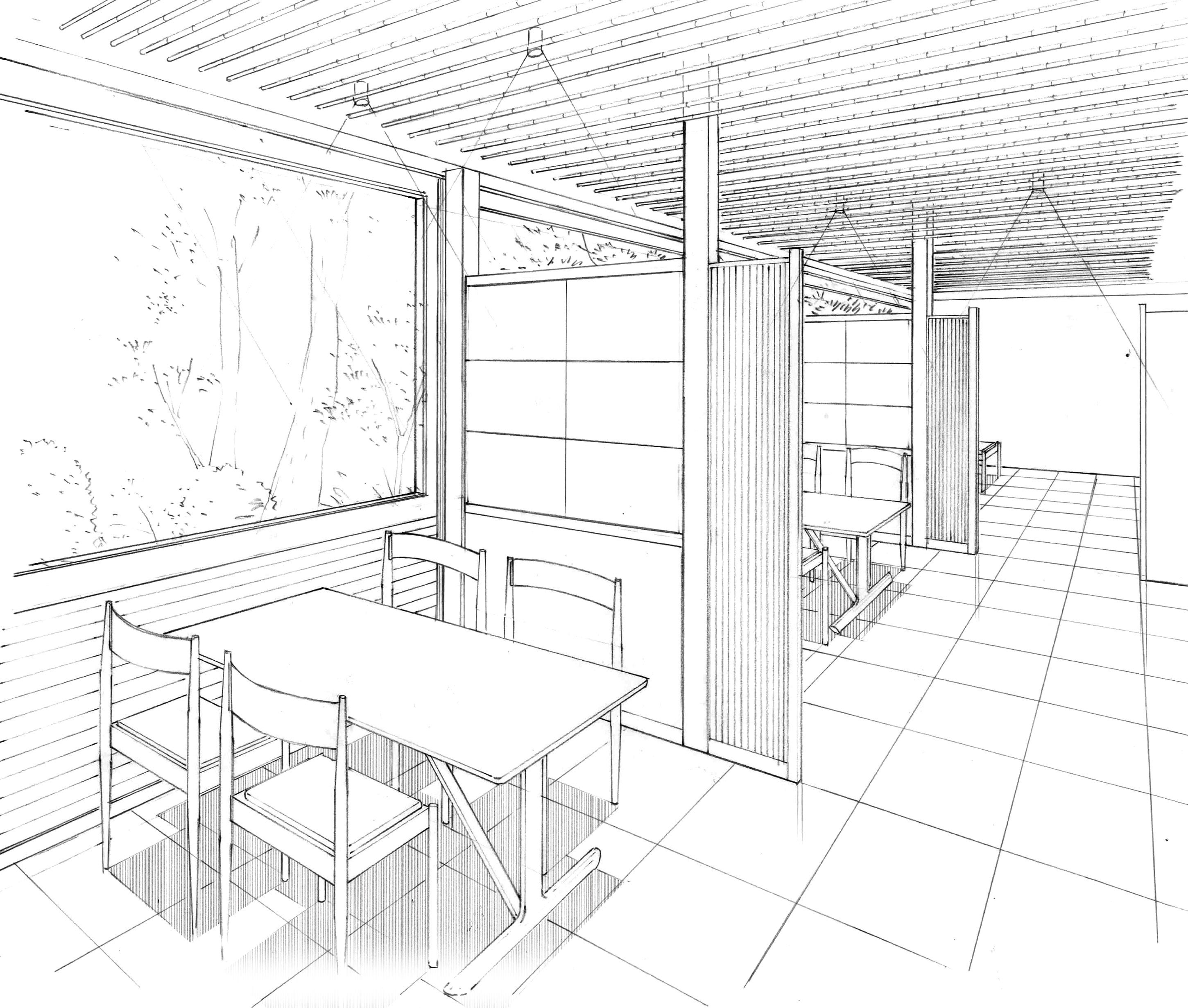 ・中庭を眺める6ブースの刷新と、2つの半個室空間を設けます。