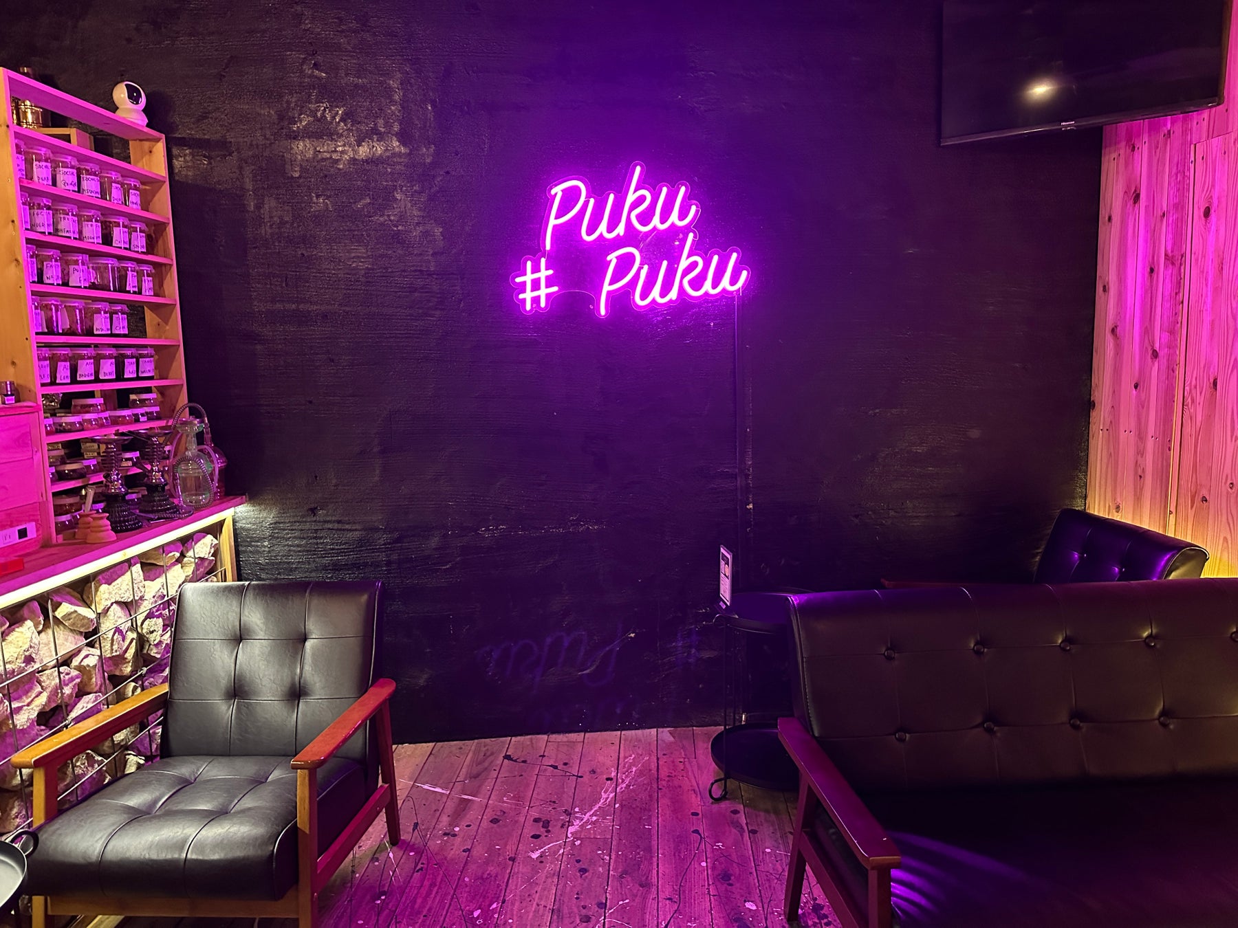 日本全国に展開を続ける大手シーシャグループ「PukuPuku」。福岡県・博多・中洲店は、シーシャを楽しむことができる「大人の遊び場」をテーマに、リラックスできる居心地の良い内装。 そして、まさに「隠れ家」ともいえる完全個室もご用意させていただいております。