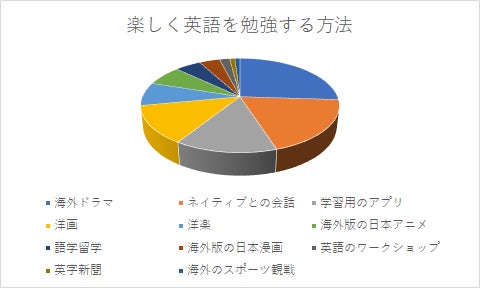 以下、「学習用のアプリ」「洋画」「洋楽」「海外版の日本アニメ」「語学留学」「海外版の日本漫画」「英語のワークショップ」「英字新聞」「海外のスポーツ観戦」と続きます。