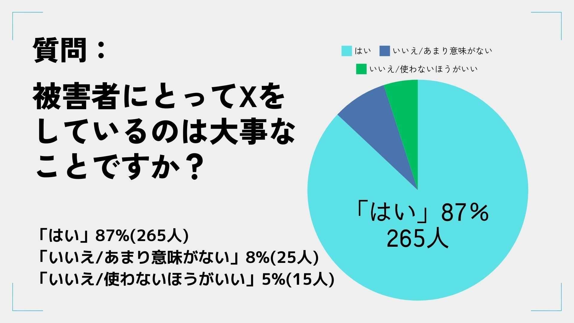 9割近くの265人がXは実子誘拐被害者にとって大事だと回答。