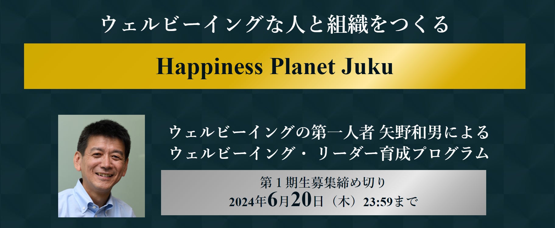 ウェルビーイングの第一人者 矢野和男が講師を務めるウェルビーイング・リーダー育成プログラム「Happiness Planet Juku」の第1期生募集開始!
