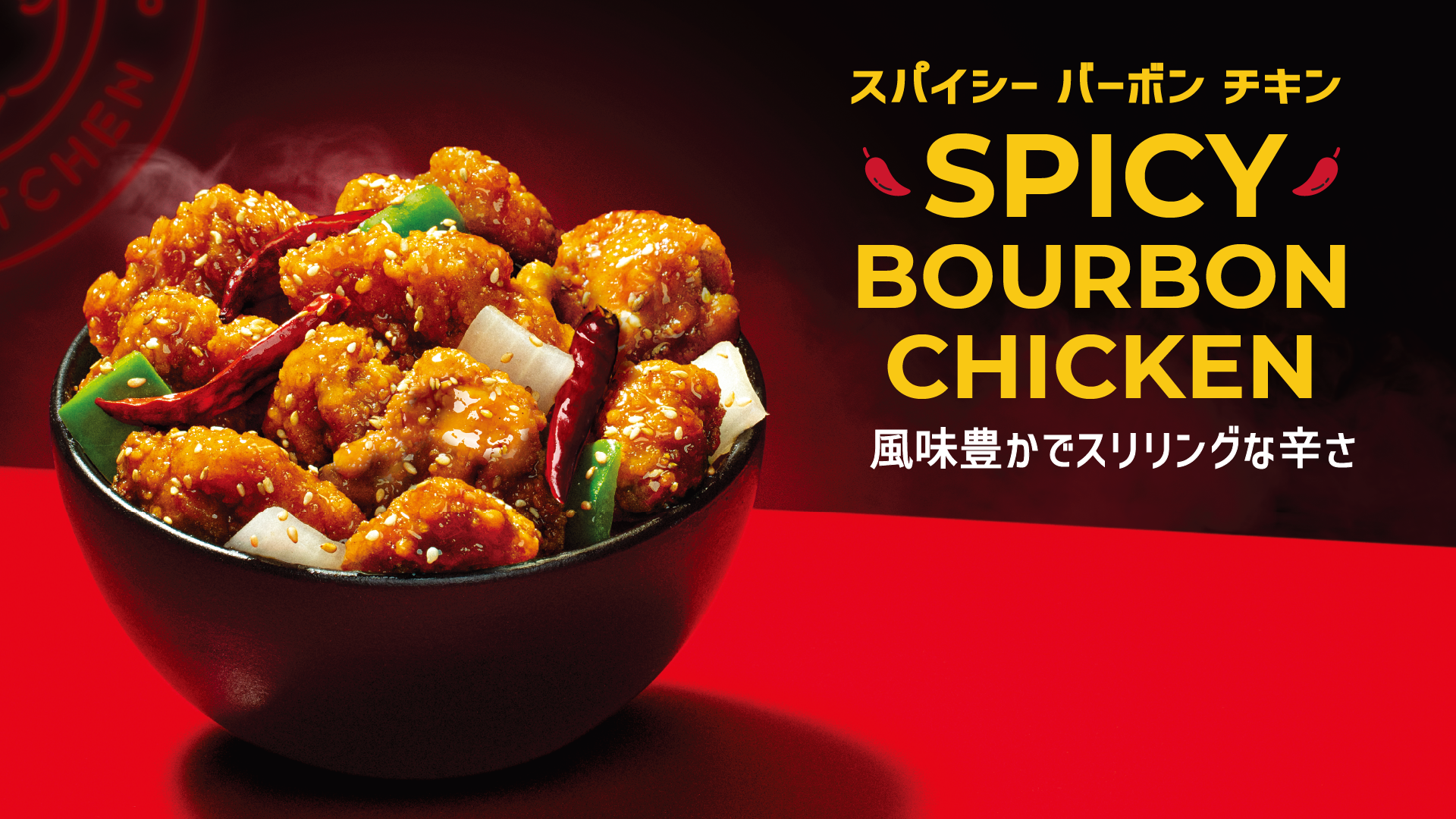 「スパイシー・バーボン・チキン」は、アメリカ南部の伝統料理「バーボンチキン」をスパイシーにアレンジしたものです。カリッとした骨なしチキンと新鮮な野菜を、甘辛いバーボンソースとゴーストチリペッパーで炒め、ごまをトッピング。パンダエクスプレス史上最も辛いこのメニューは、クセになる味わいと満足感で、日本の皆様を魅了します。