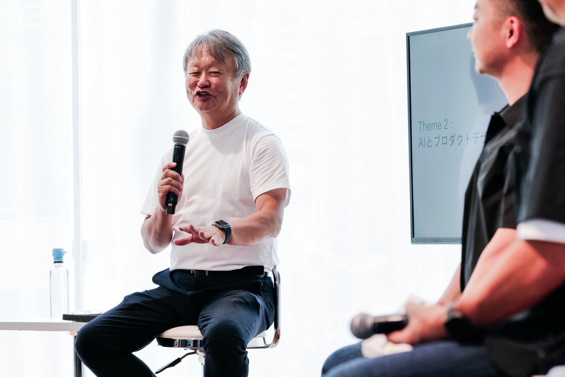モデレーターとして参加したNothing Japanのマネージングディレクター 黒住吉郎に、以前”我々はアプリケーションに溺れている生活を送っている”と話していたがAIをどう捉えているかと尋ねられた深澤氏は、「インターネットが登場したときよりも、AIの登場は劇的な変化なはずですが、早くも当たり前になっていますよね。劇的な変化の割に、当たり前に使えるという感覚があって、変化に気が付かないこともある。僕らの世界はAIにどっぷりつかってしまっている」と印象を語りました。