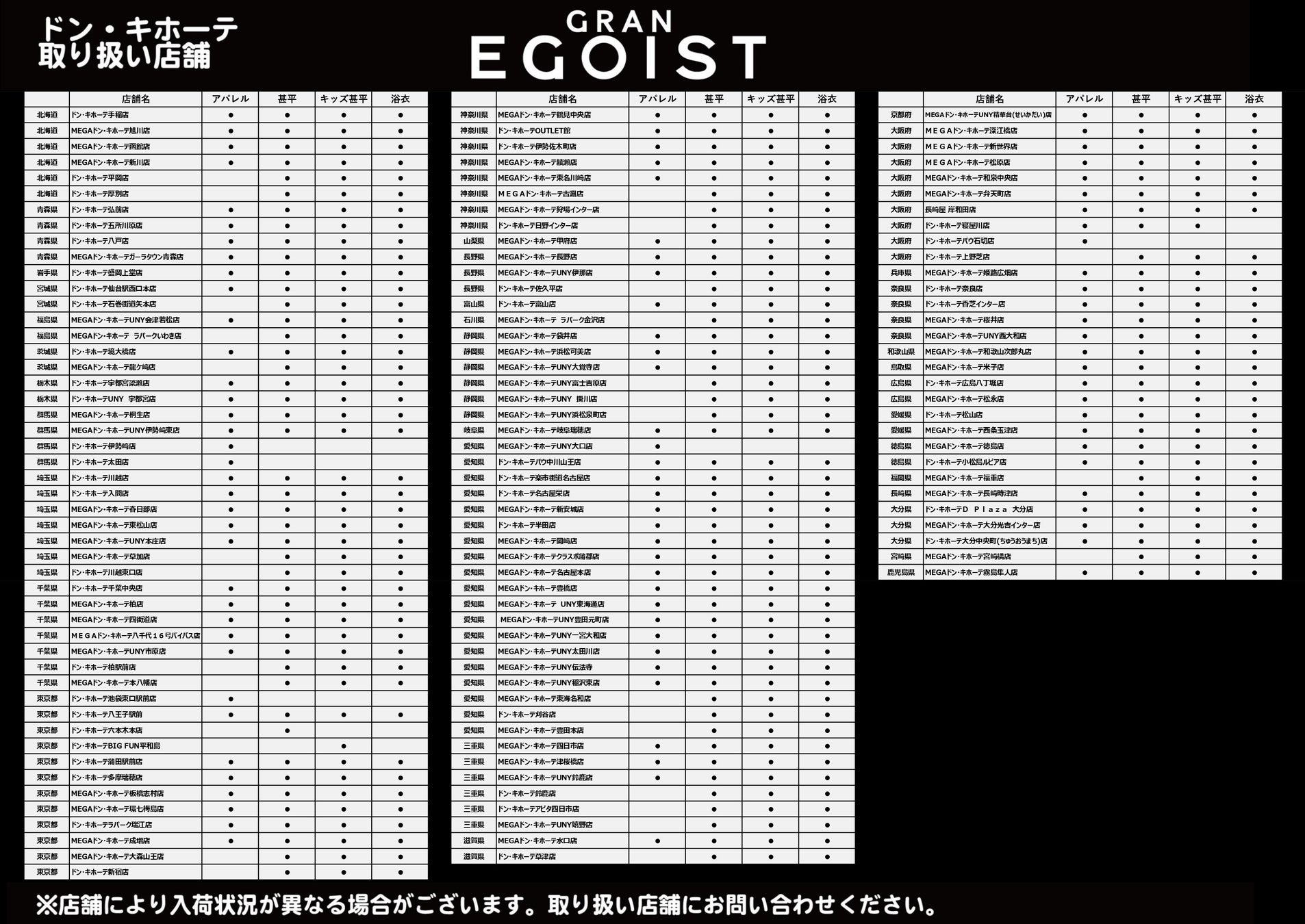 GRAN EGOISTは限られたドン・キホーテ アピタ・ピアゴでの取扱い店舗のみの販売となります。