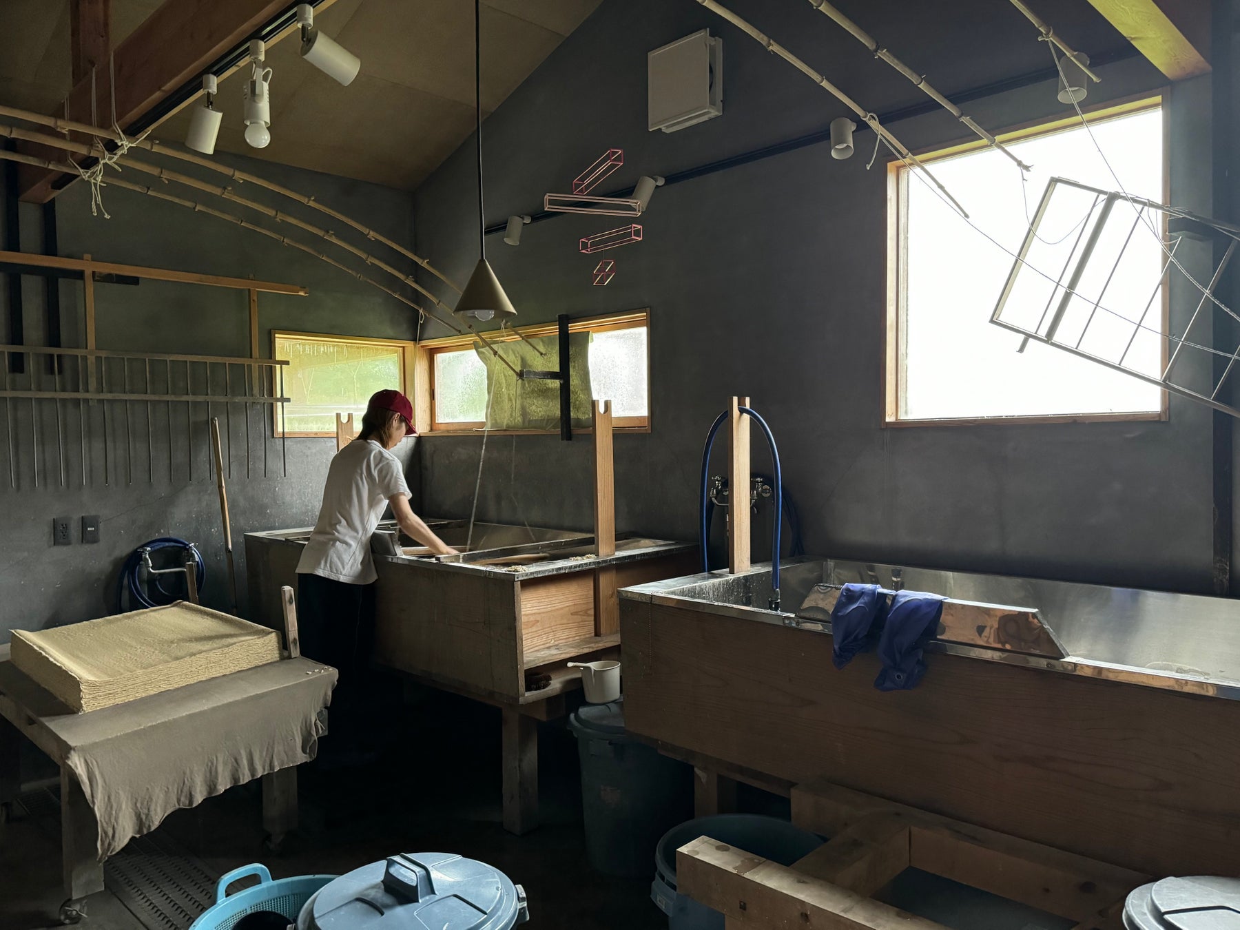 また、ハタノは個人の活動としてだけではなく、永続的に和紙の未来をどう残していくかという視点を深めています。 和紙産業を将来にわたって存続させるため、 昨年、ハタノは自ら立ち上げた黒谷和紙の工房に「紙漉キハタノ」と名を掲げました。和紙の産地が減少する中で、制作・加工・空間提案までを一貫させる仕組みを整え、他産地とのネットワーク構築にも力をいれています。本展では、こうした「紙漉キハタノ」の取り組みについても、映像や和紙製品を通してご紹介します。