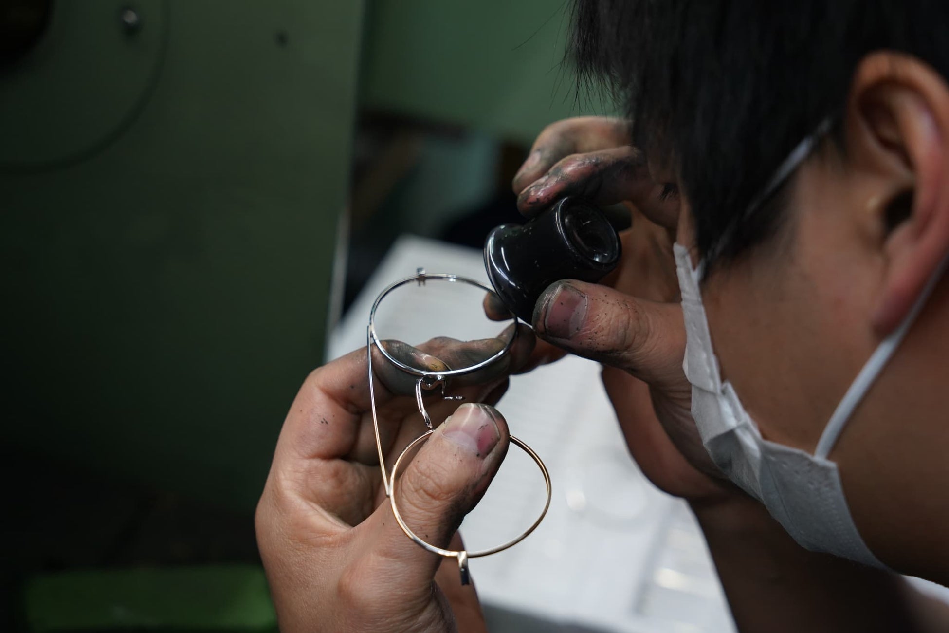 金無垢を加工できる日本国内でも稀な工場を持ち、他にもスターリングシルバーやプラチナ950、経年劣化が少なく、再加工に優れたサンプラチナ製のフレームも製造しており、皇室が愛用していた眼鏡を製造をしていた歴史もあります。