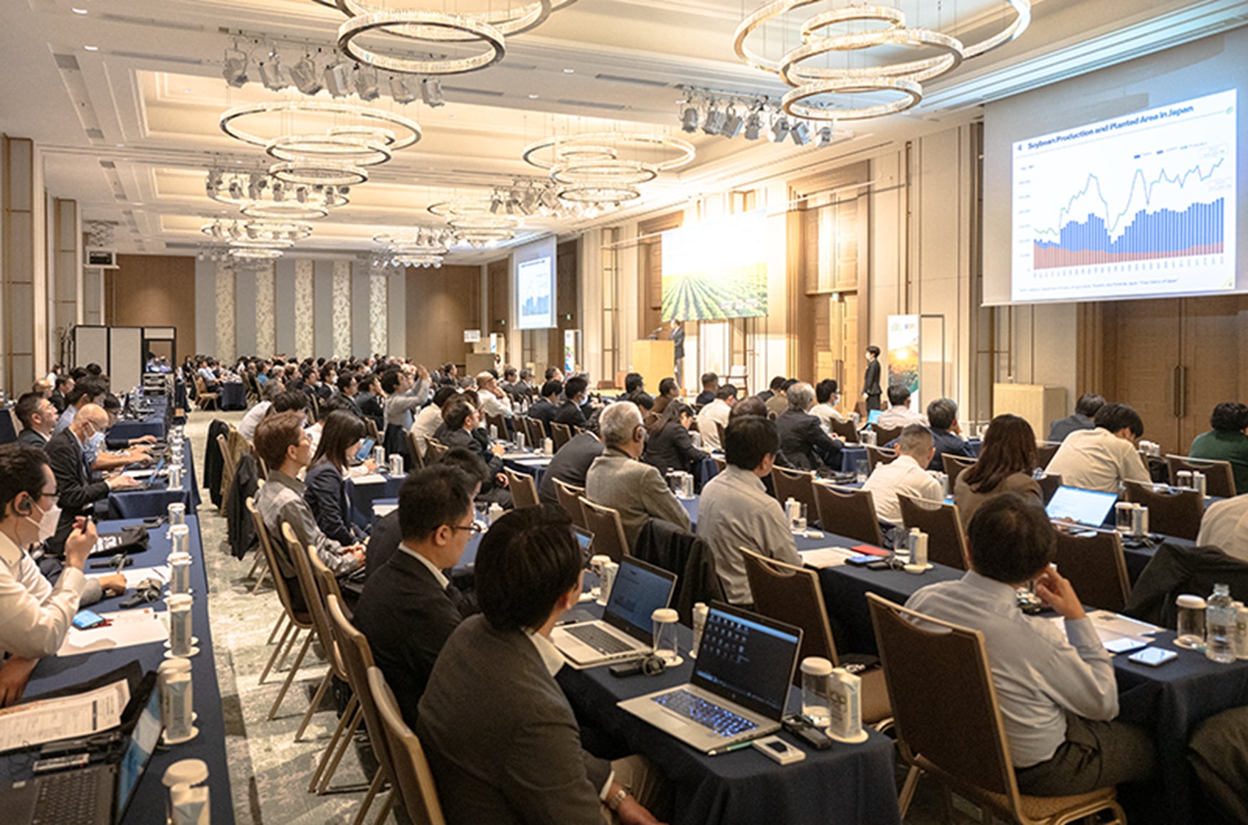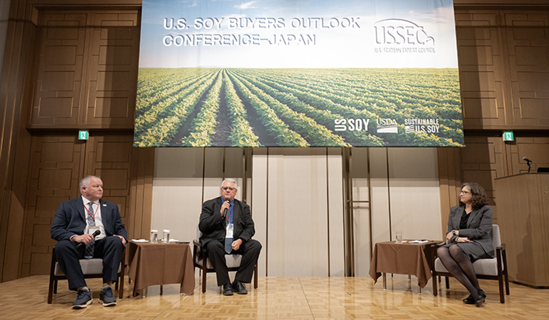 アメリカ大豆輸出協会(USSEC、本部:米国ミズーリ州チェスタフィールド市、日本事務所:東京都港区虎ノ門)は、2024年11月12日(火)、今秋収穫した2024/25年度の米国産大豆の作柄や品質などを需要家に向けて報告するカンファレンス「米国大豆バイヤーズ・アウトルック会議」をThe Okura Tokyo(港区虎ノ門)で開催しました。米国から大豆生産者、アメリカ大豆の輸入業者、大豆関連団体関係者、専門家が来日し、「2024年産米国大豆の品質」「世界の需要動向」「(SSAPアメリカ大豆サステナビリティ認証)」などについて幅広く報告し、日本・アジアの需要家、商社・流通関係者、報道機関など約213名が直接対面で参加しました。