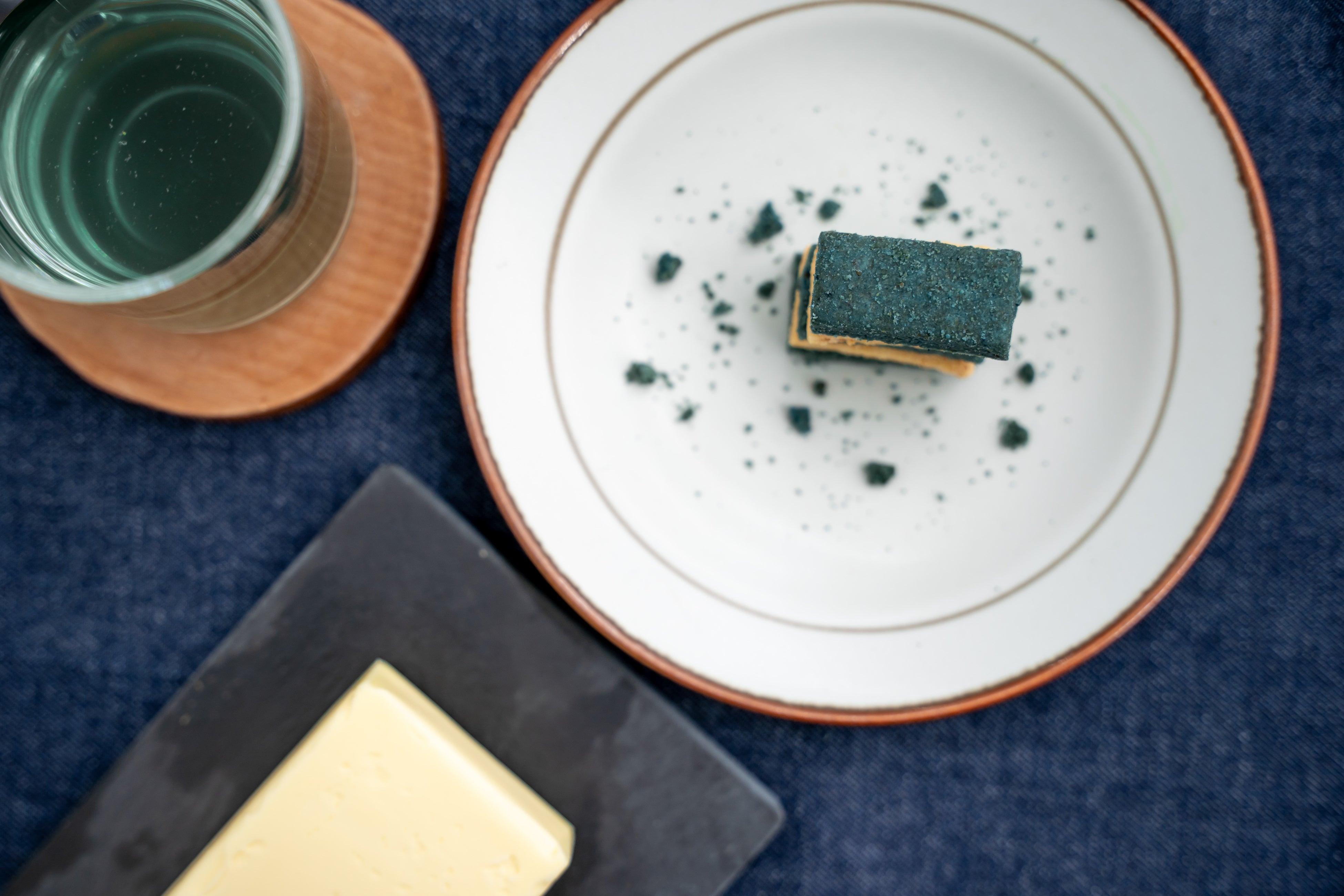 バターの芳醇な香りとアクセントになっているソルトのバランスが絶妙な「バターソルト味」をデニム色で仕上げることで、「米粉デニムソルト味」が生まれました。