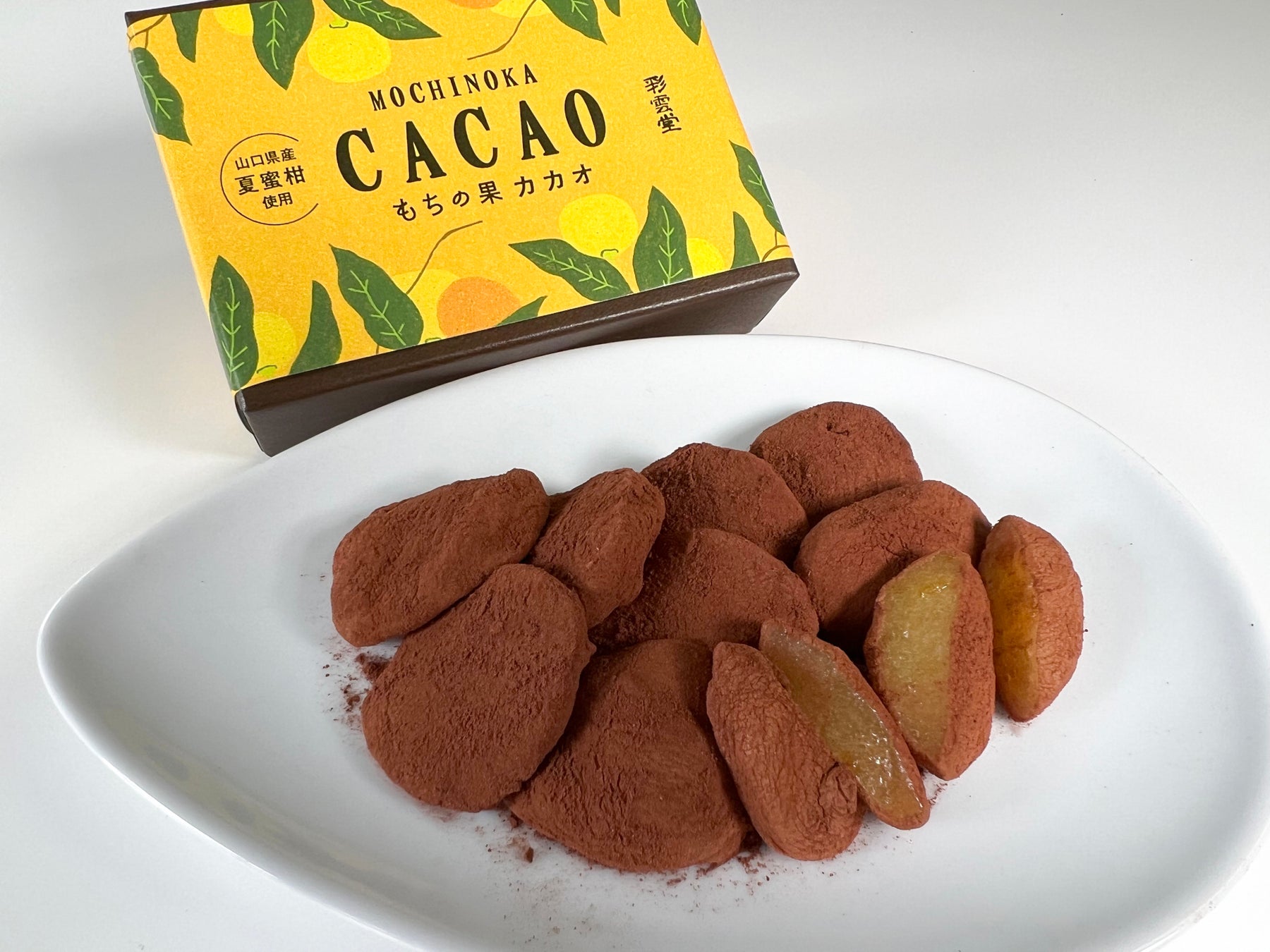 その定番の「もちの果 夏蜜柑」に、ココアをふんわりとまとわせたのが、「もちの果 cacao」です。柑橘の爽やかさとカカオのほろ苦さが重なり、バレンタインらしい余韻を楽しめる一品に仕上げました。