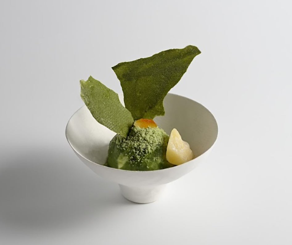 和菓子製造の過程で生まれる小豆の煮汁の活用や、島根県産よもぎの香りを生かすなど、素材の価値を見つめ直し、和菓子の技と感性を現代的な形に再解釈した試みです。