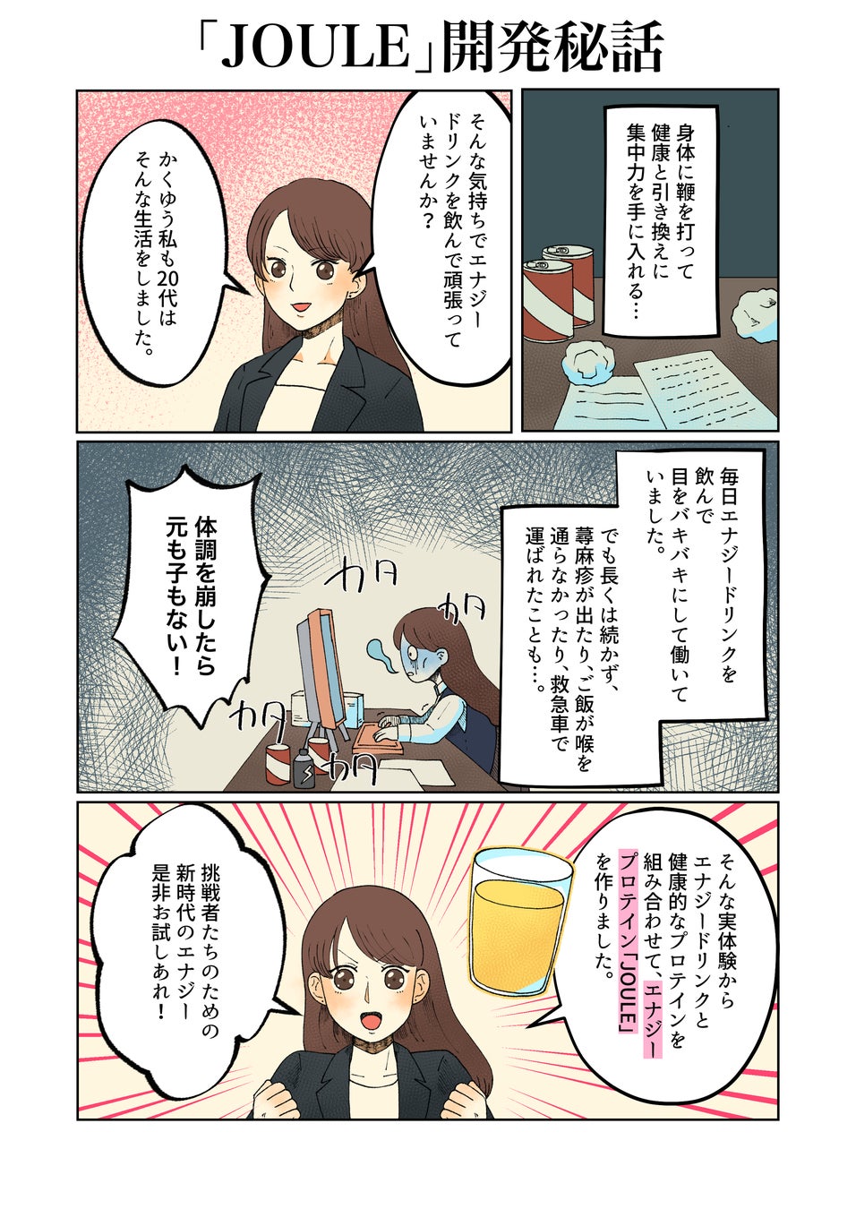エナジードリンク愛飲歴11年の代表が体調を壊したことをきっかけに、健康的なエナジードリンクを世に広めたいと思って、開発を始めました。