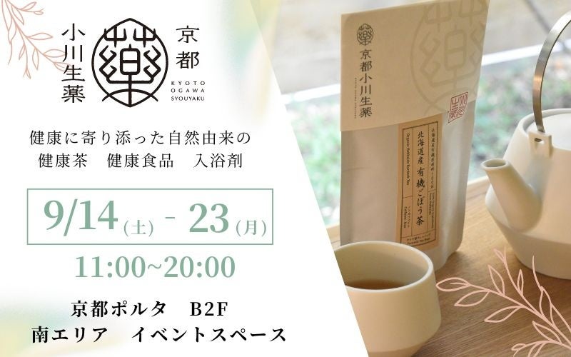 京都小川生薬は、2024年9月14日から9月23日まで、京都ポルタB2F南エリアエスカレーター前にて初のポップアップイベントを開催いたします。