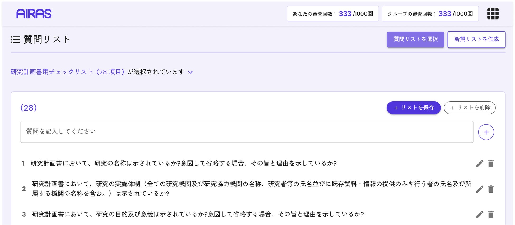 『AIRAS』は、研究計画書やインフォームドコンセントなどの審査対象文書を大規模言語モデルを用いて自動検証し、審査項目ごとに評価結果をフィードバックするSaaS型サービスです。迅速かつ一貫性ある審査を支援し、審査委員や担当者の負担を大幅に軽減するだけでなく、人間が見逃しがちな誤りや矛盾を指摘することで、審査の正確性向上にも貢献します。