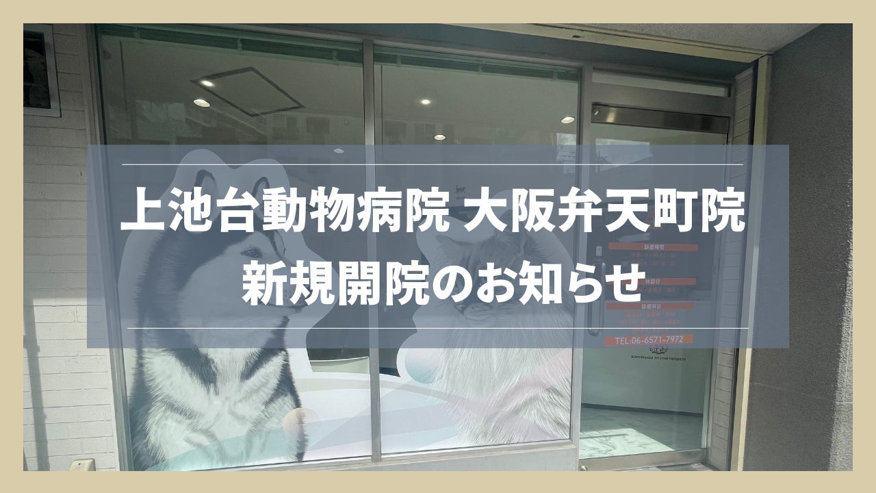 上池台動物病院 大阪弁天町院は、大阪市港区で新たに開院した動物病院です。弁天町駅から徒歩5分と、アクセスしやすい立地です。周辺にはコインパーキングもあるため、お車でもご来院いただけます。