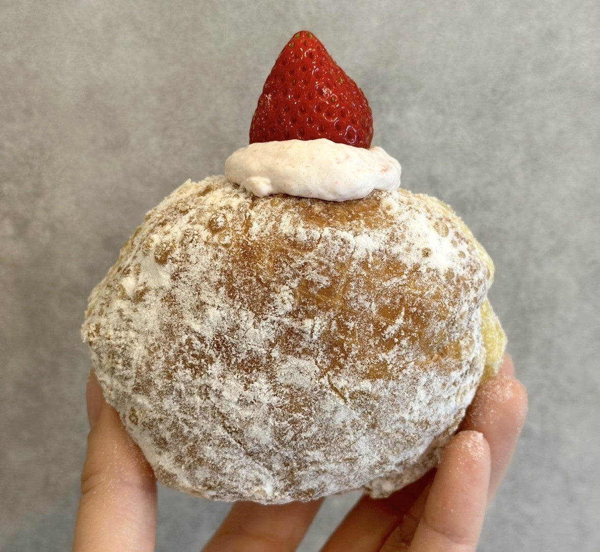 自家製生いちごクリームと国産いちごの数量限定のクリームドーナツです。