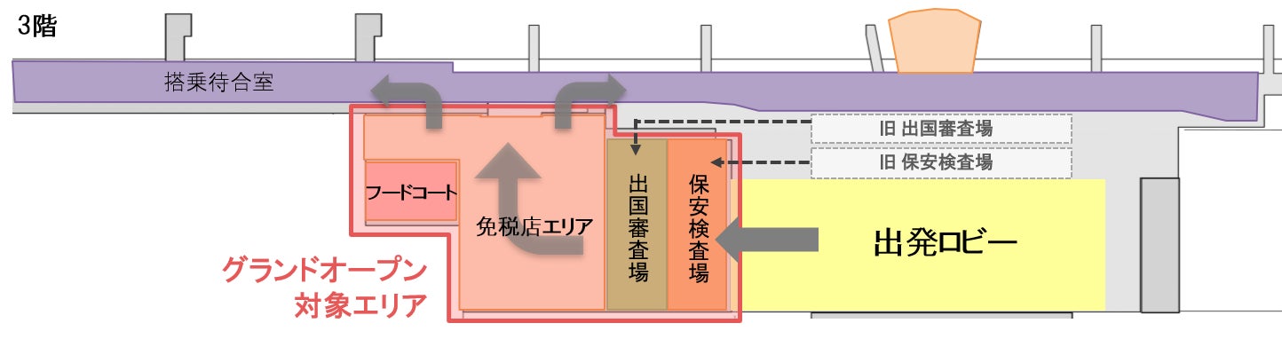 2025年3月 グランドオープン(保安検査場・出入国検査場拡張移転、免税店・フードコートオープン)<本日発表>