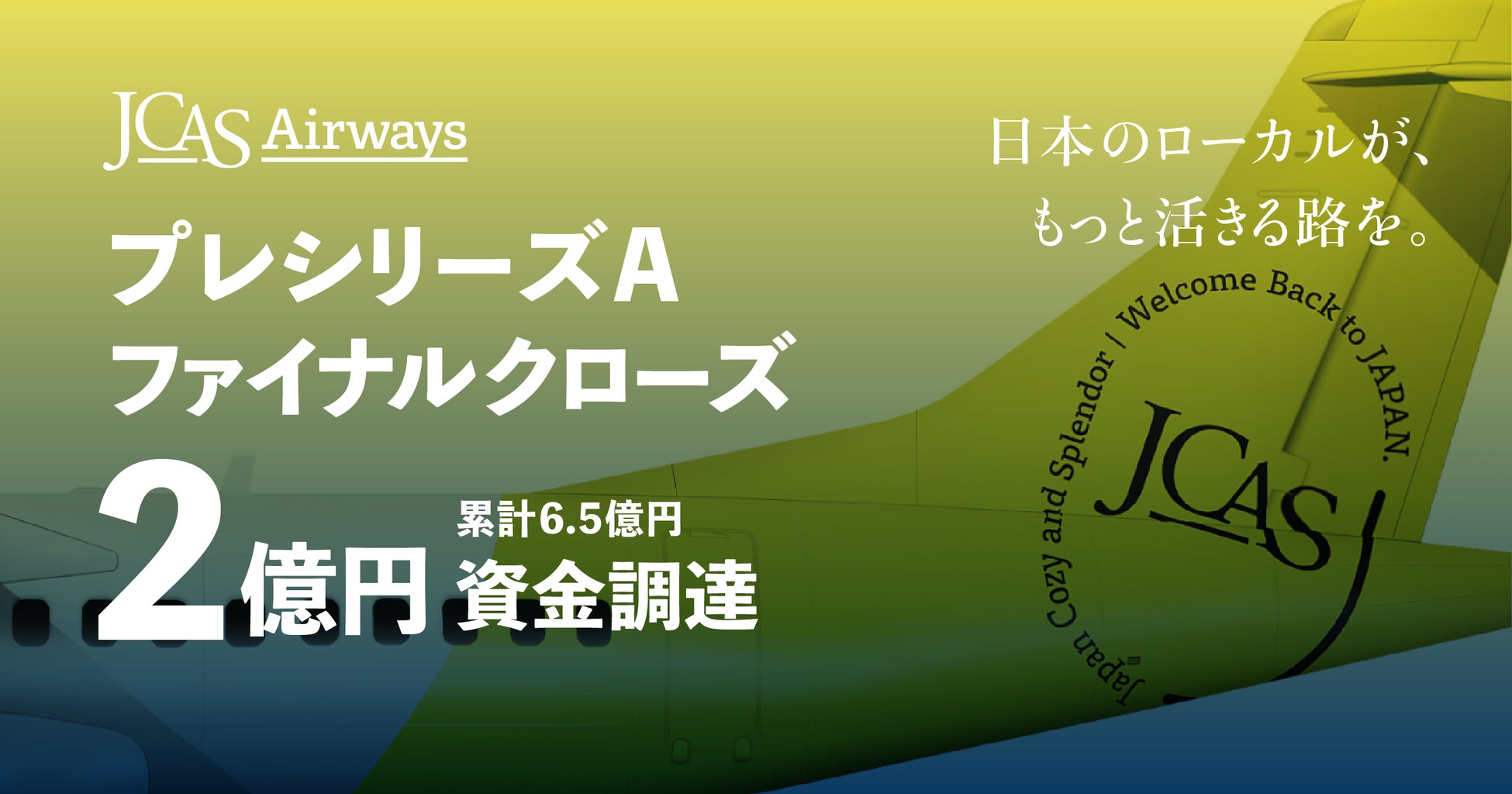2026年春の新規就航を目指す株式会社ジェイキャスエアウェイズ(本社:東京都千代田区、代表取締役白根 清司・梅本 祐紀、以下「当社」)は、この度、第三者割当増資により、プレシリーズAラウンドのファイナルクローズとして2億円の資金調達を実施し、設立からこれまでの累計調達額が約6.5億円となることをお知らせいたします。