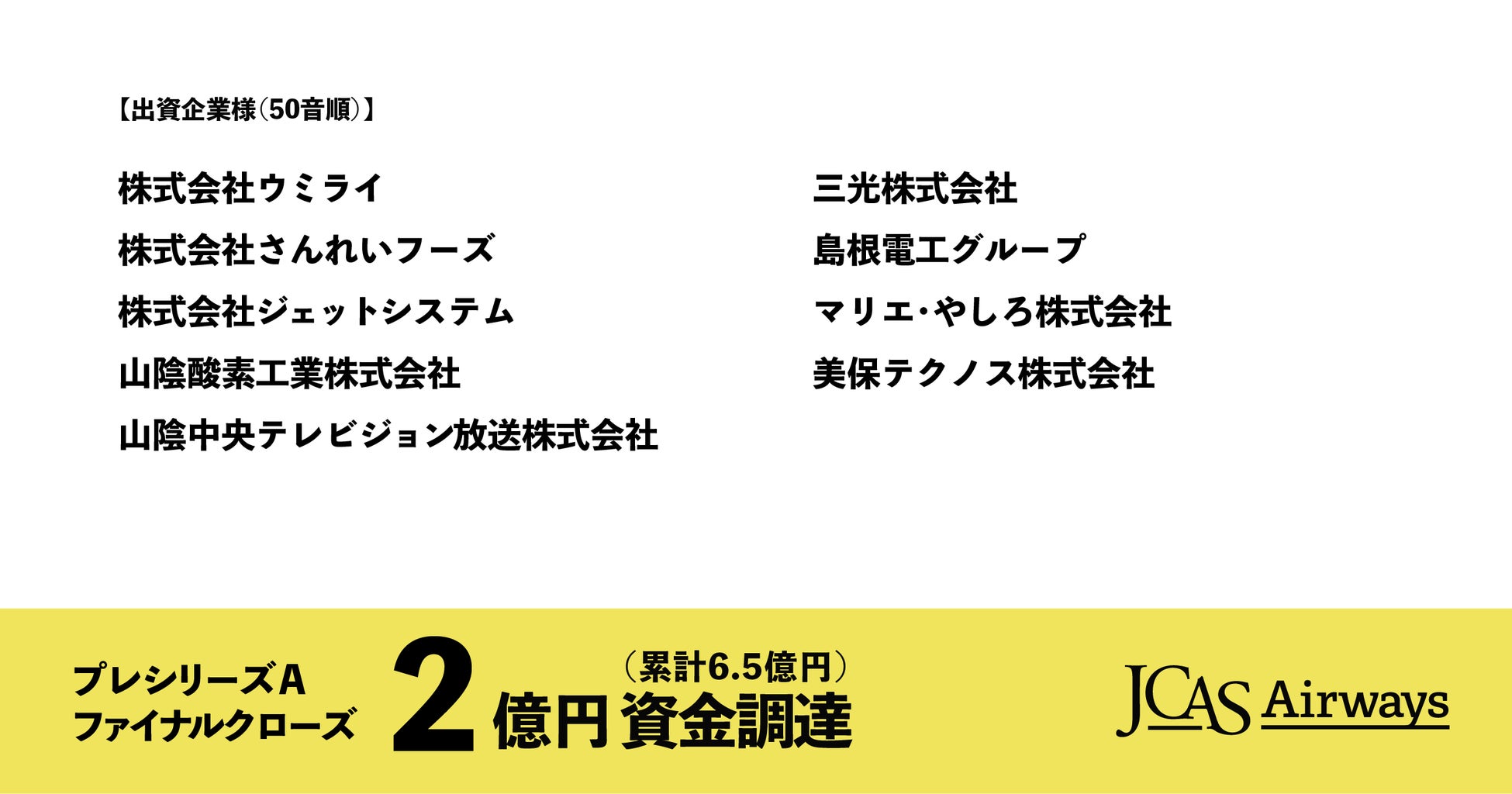 また、ジェイキャスエアウェイズは、地域航空事業に加え、地域創生にも取り組むスタートアップ企業です。この魅力溢れる山陰の地で、地域の皆様と共に地域創生に貢献できることを大変楽しみにしております。引き続きどうぞよろしくお願い致します。」