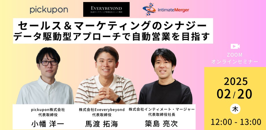 Everybeyondが2/20(木) 開催の株式会社インティメート・マージャー主催のオンラインセミナー「セールス&マーケティングのシナジー:データ駆動型アプローチで自動営業を目指す」に登壇