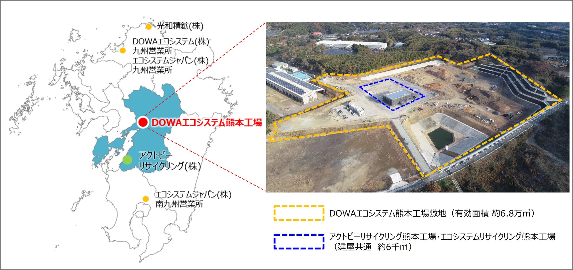 DOWAホールディングス(株)(東京都千代田区外神田四丁目14番1号 資本金:364億円 社長:関口 明)子会社のDOWAエコシステム(株)(同所 資本金:10億円 社長:矢内 康晴)は、熊本県宇城市の熊本工場に、エコシステムリサイクリング(株)(埼玉県本庄市仁手1781番地 資本金:3億円 代表取締役社長:江島 光一郎)熊本工場(以下、新工場)を新設することを決定しました。