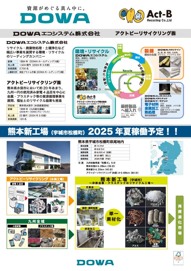 DOWAエコシステムが九州地区において環境・リサイクル事業を拡大